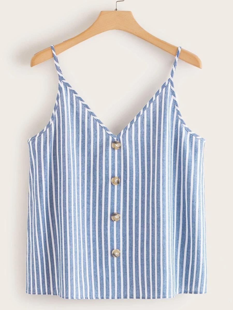 لباس علوي مقاس كبير بحمالات بأزرار امامية ومخطط