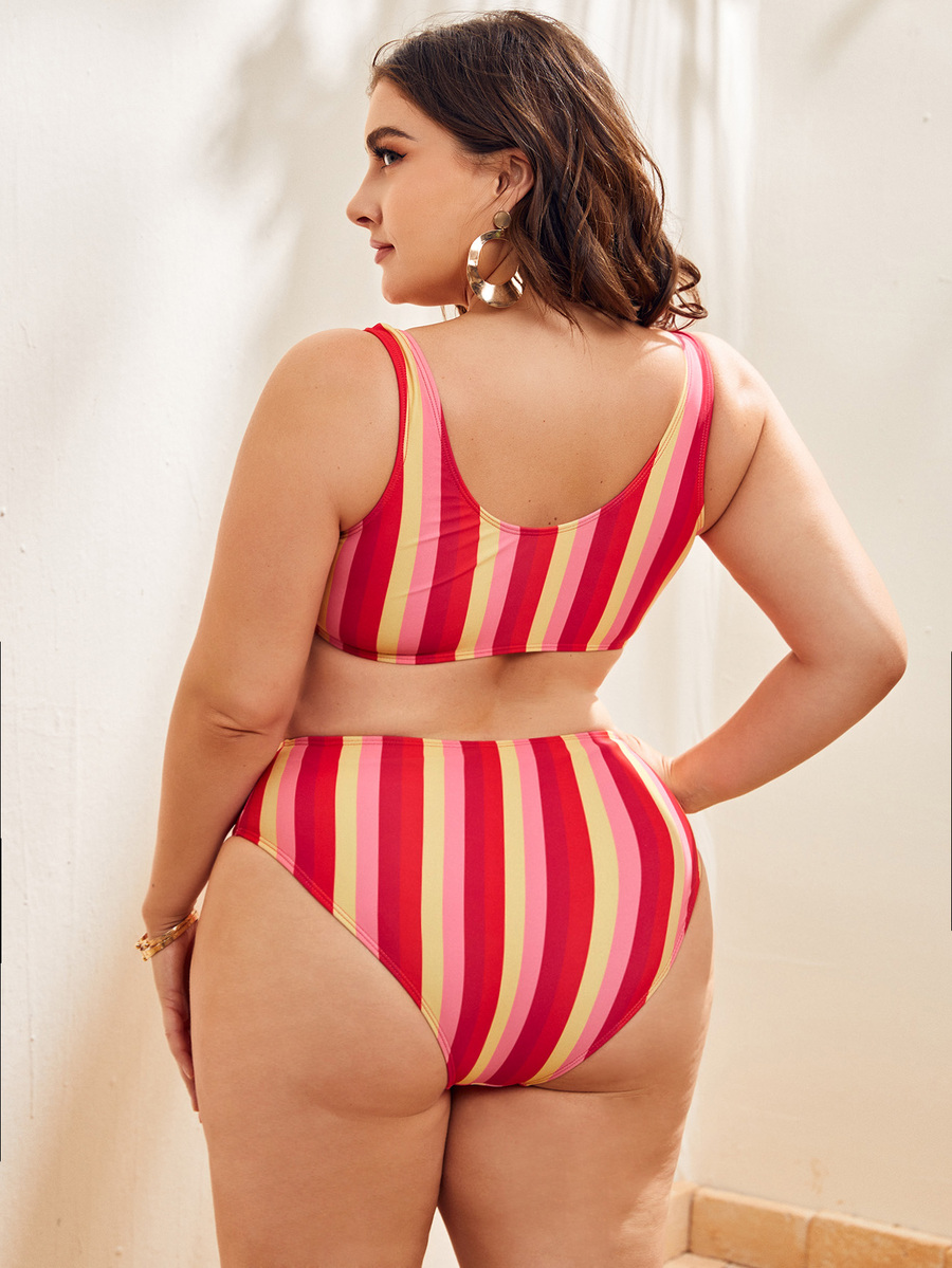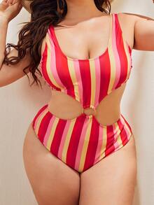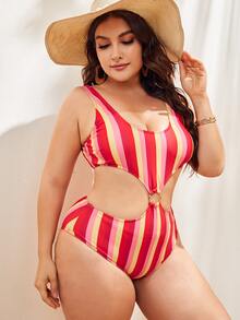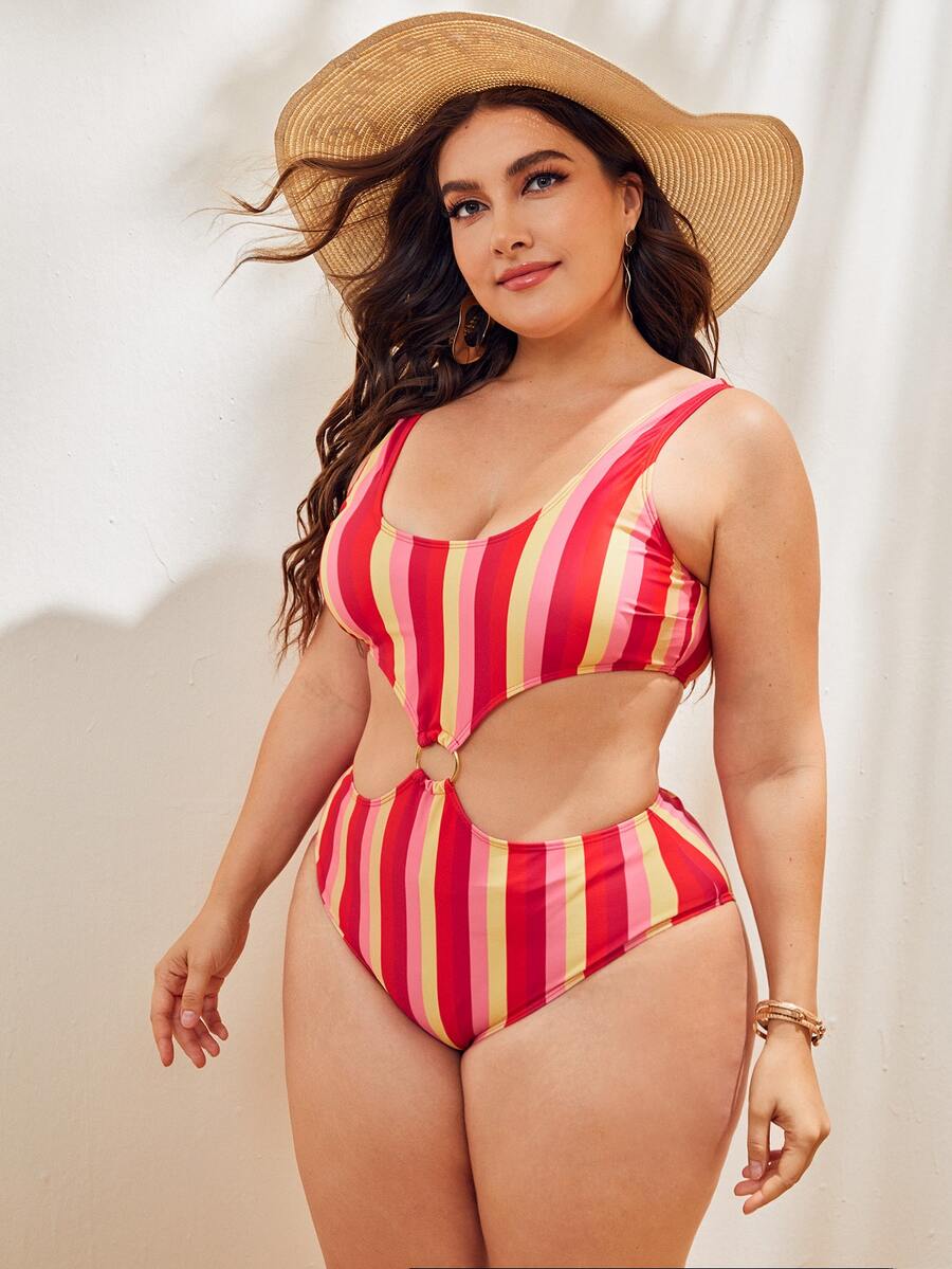 ملابس سباحة قطعة واحدة متصل بحلقة مخطط مقاس كبير