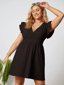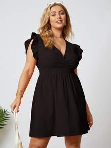 فستان بكتف مكشكش متداخل أمامي مقاس كبير