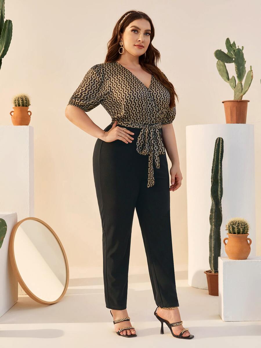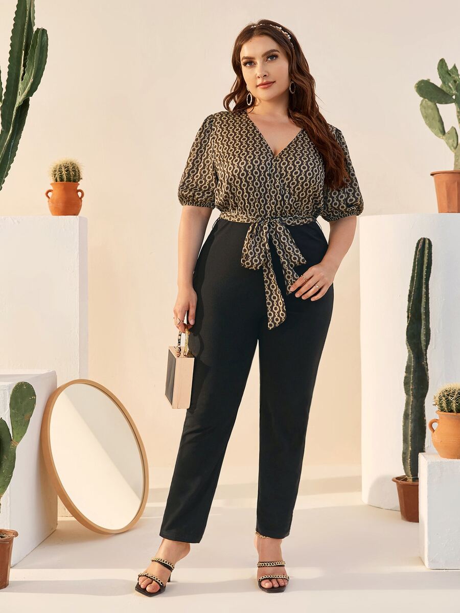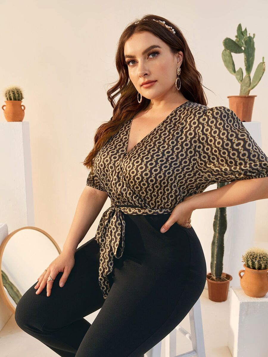 جمبسوت مقاسات كبيرة سستة بطباعة السلاسل أنيقة