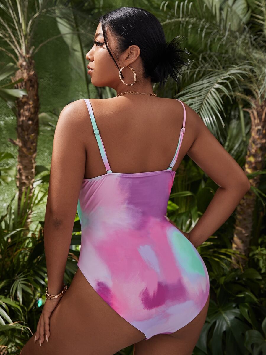 ملابس سباحة قطعة واحدة بشريط حلقي مقصوص بصبغ متعادل مقاس كبير