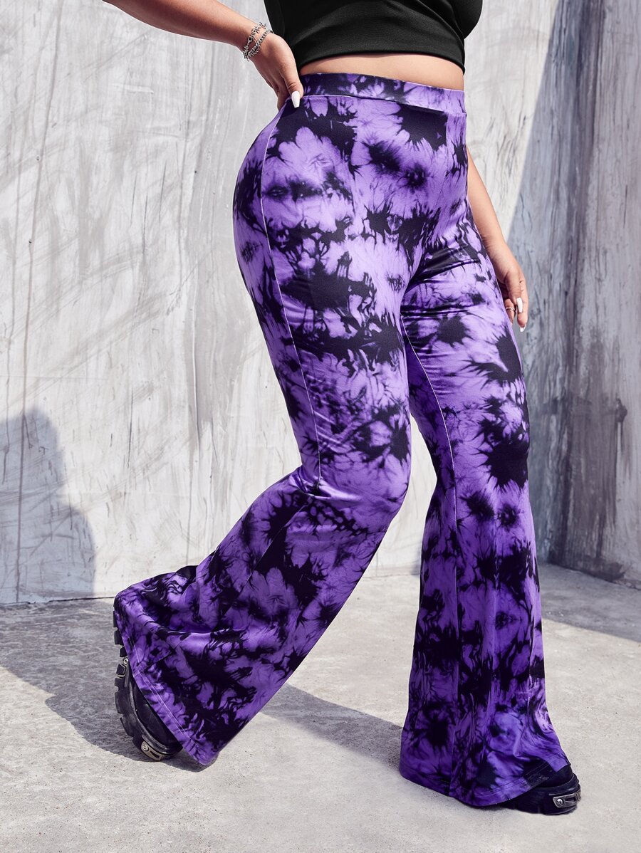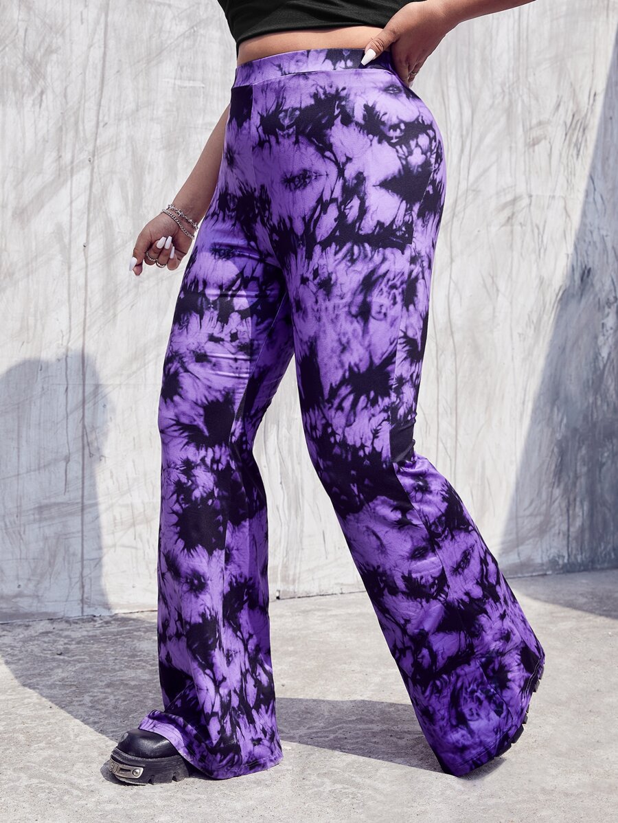 بنطلون بساق واسع صبغ متعادل مقاس كبير