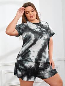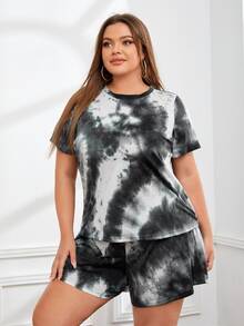 طقم شورت مع تي شيرت صبغ متعادل مقاس كبير