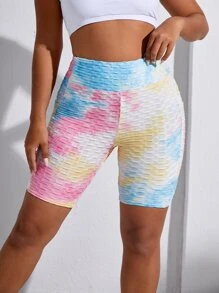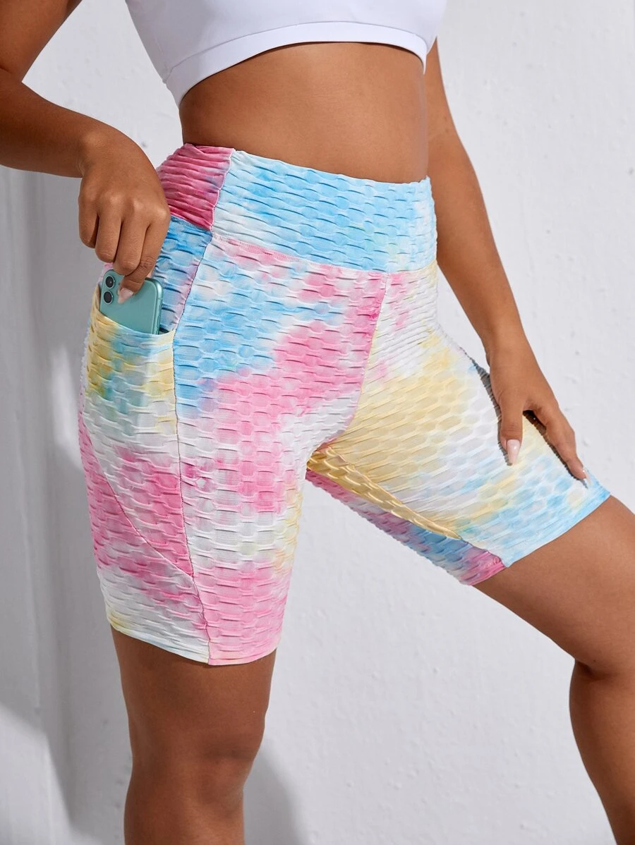 شورت رياضي ذو سطح مزخرف بصبغ متعادل مقاس كبير مع جيب هاتف