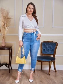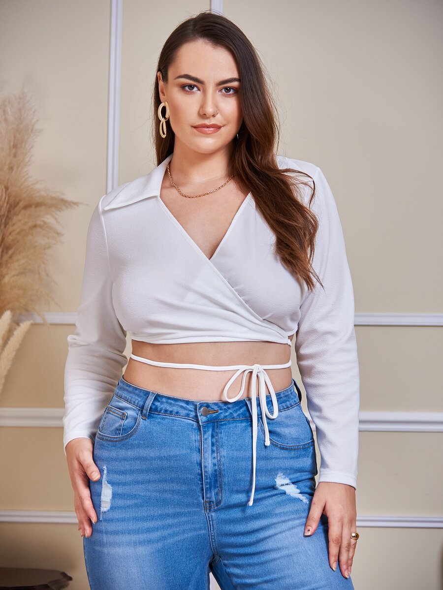 مقاس كبير لباس علوي ملفوف عقدة امامية قصير