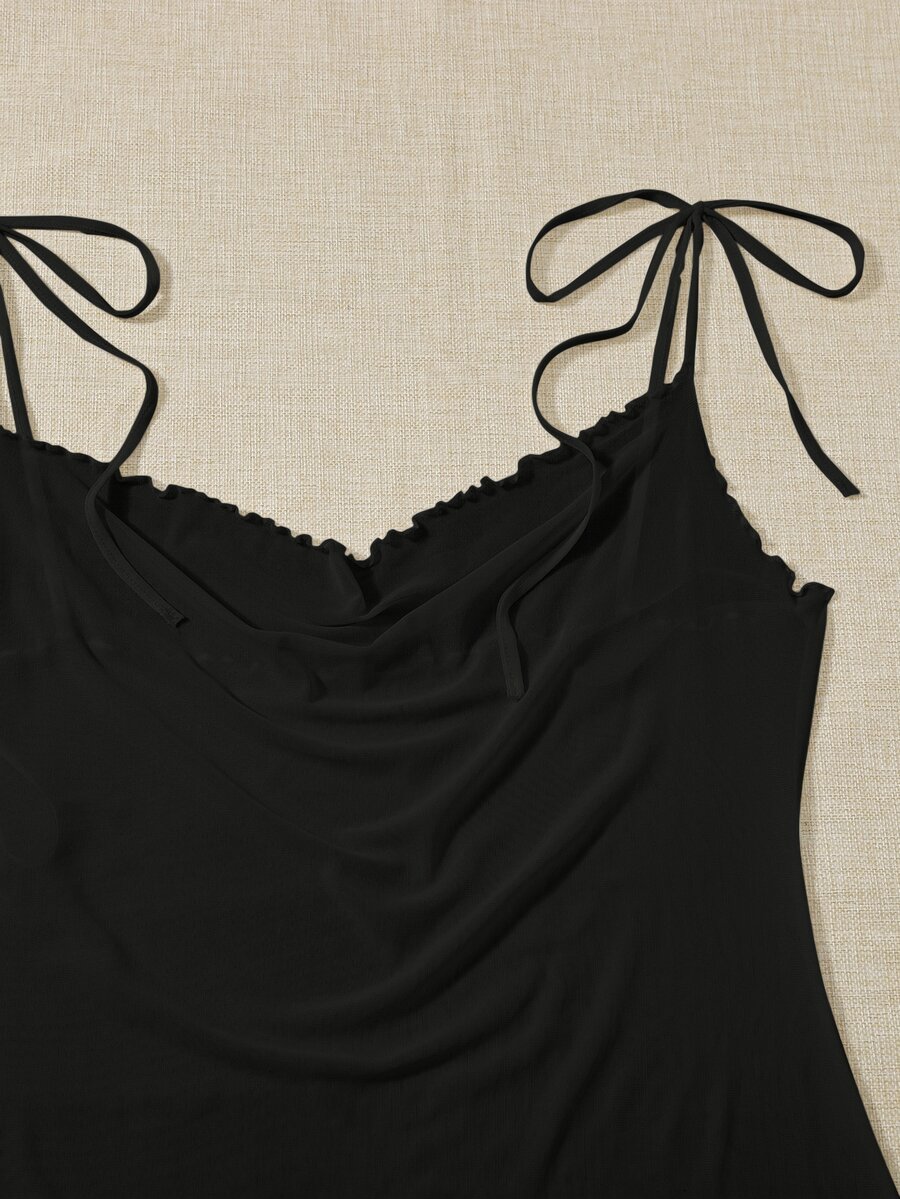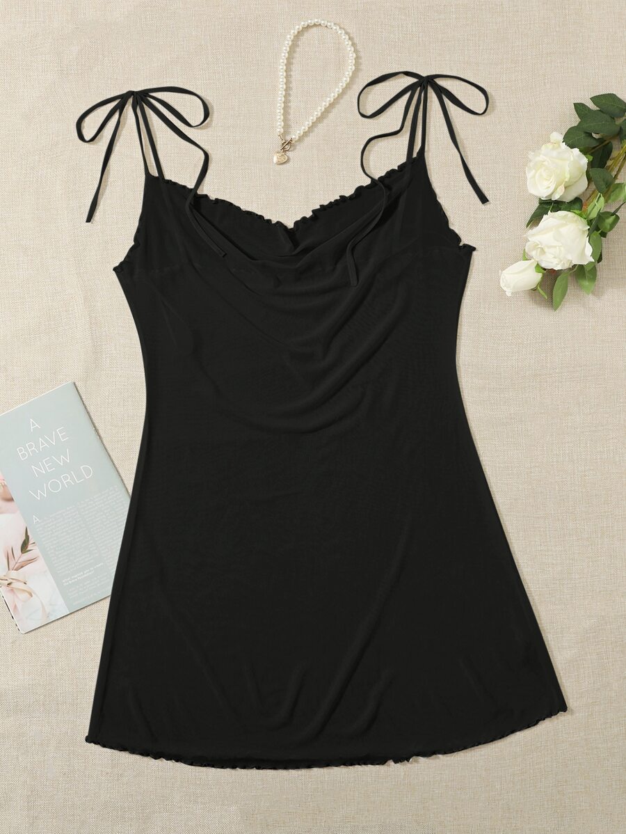 فستان نوم كامي بربطة كتف مقلم نمط نبات الخس شبكة مقاس كبير