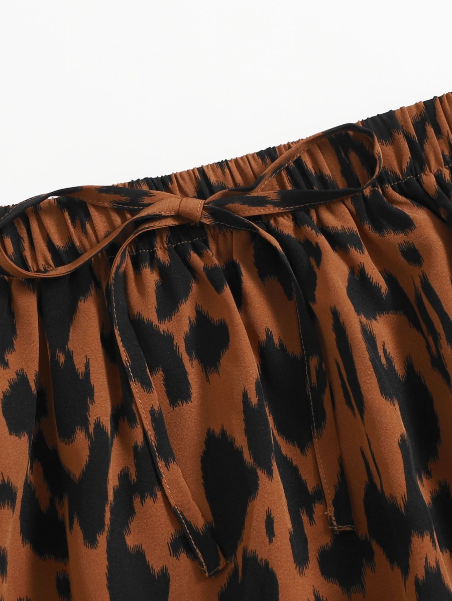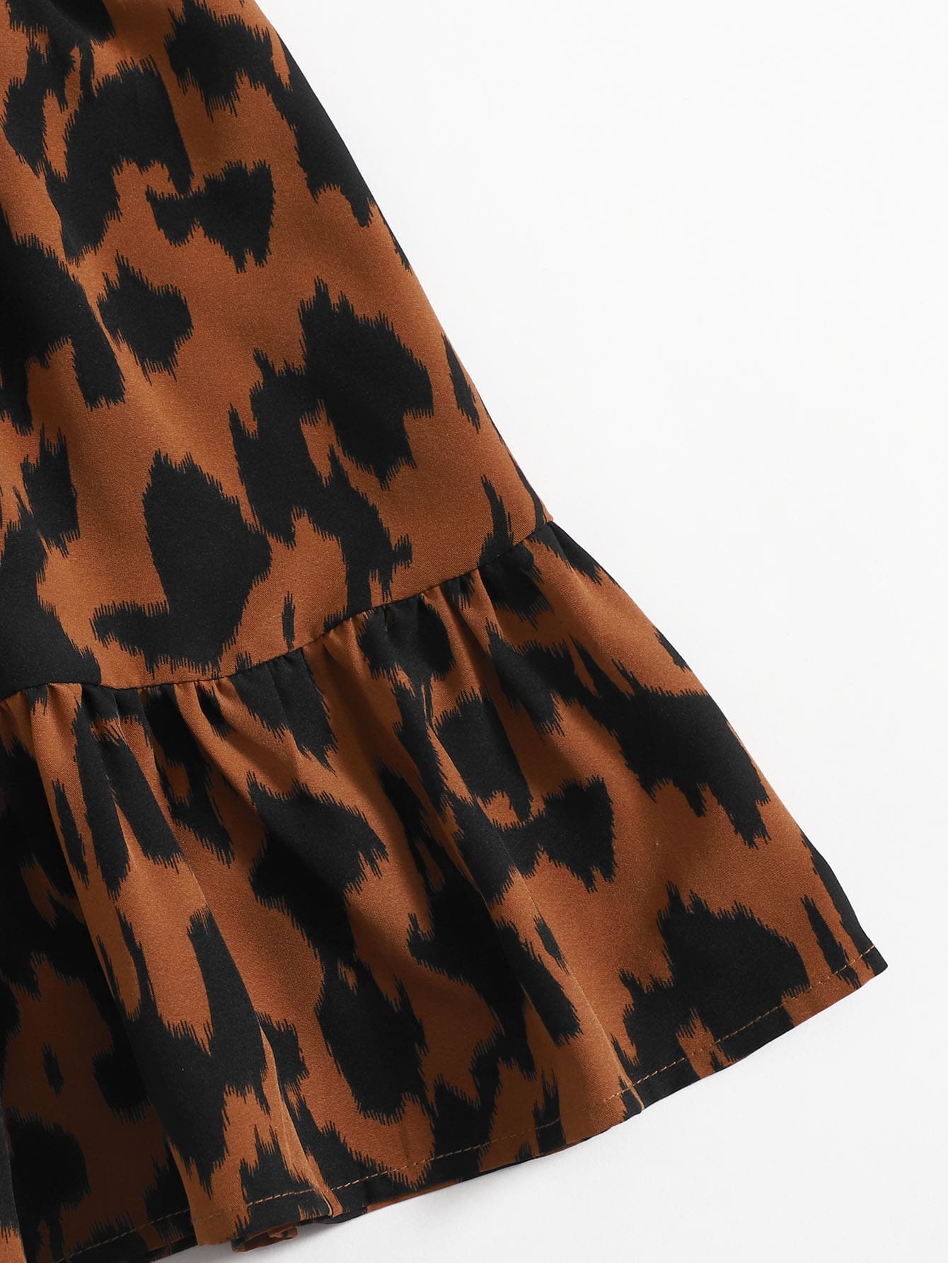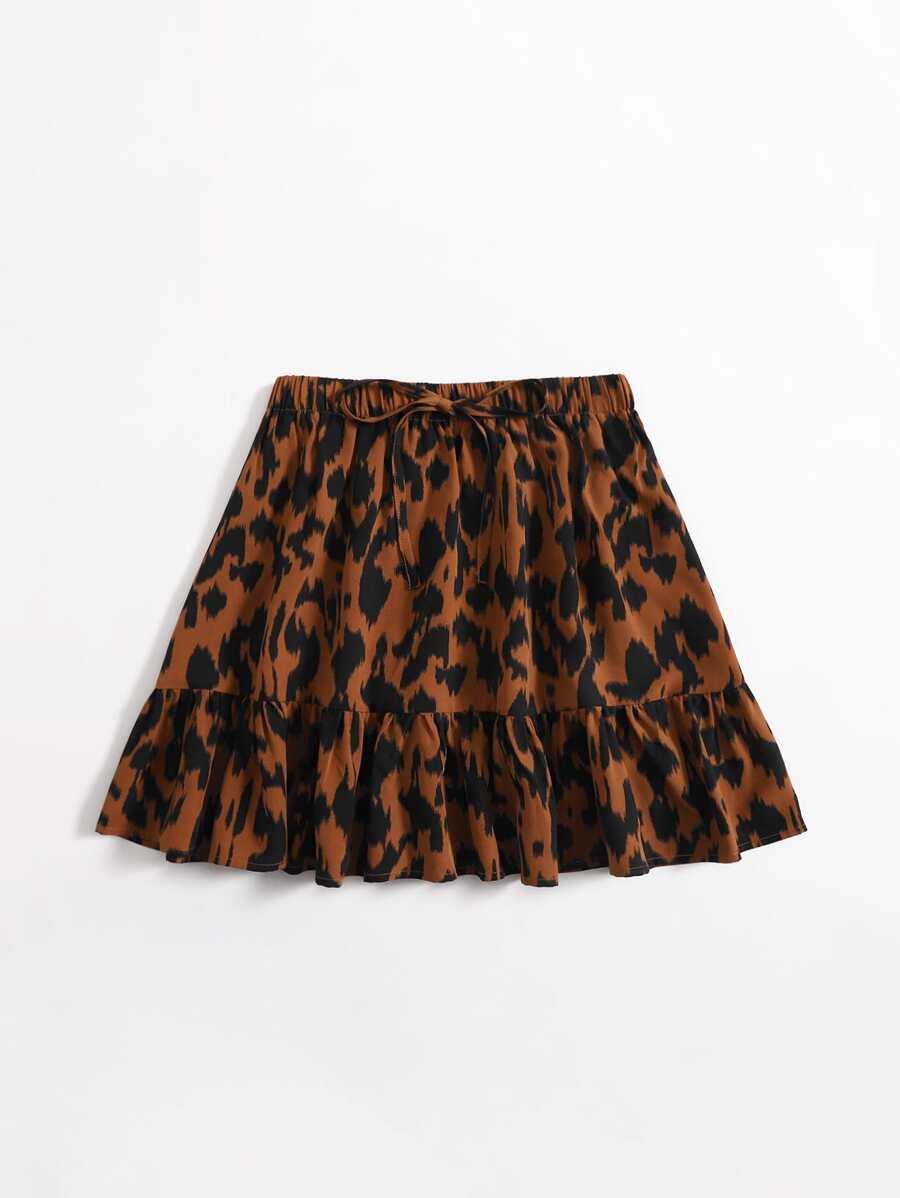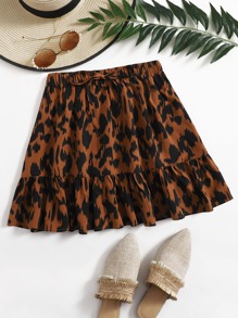 تنورة مقاس كبير بطباعة شامل بحافة مكشكشة وبربطة خصر
