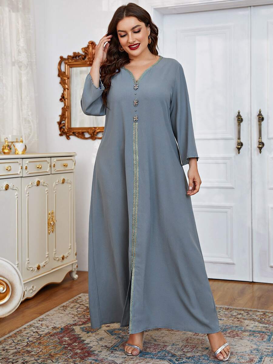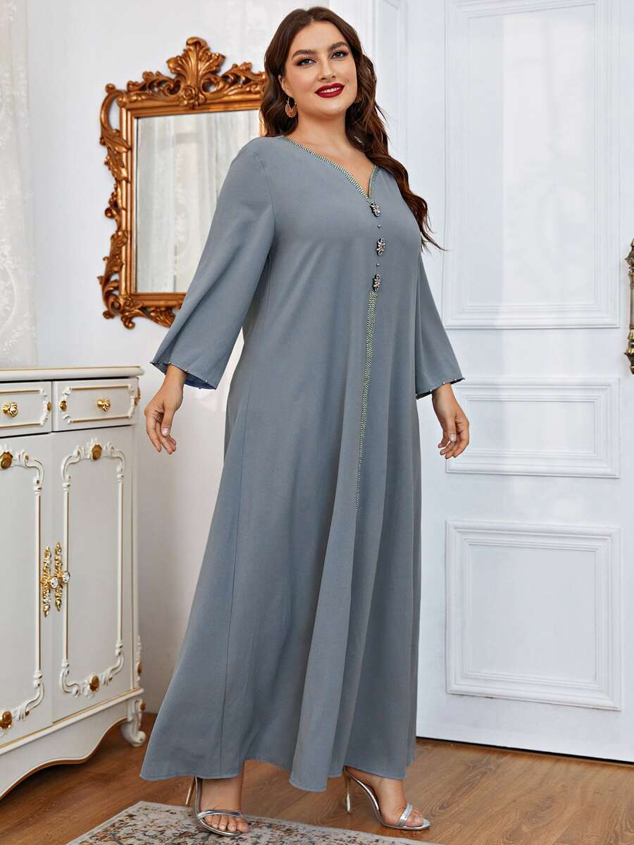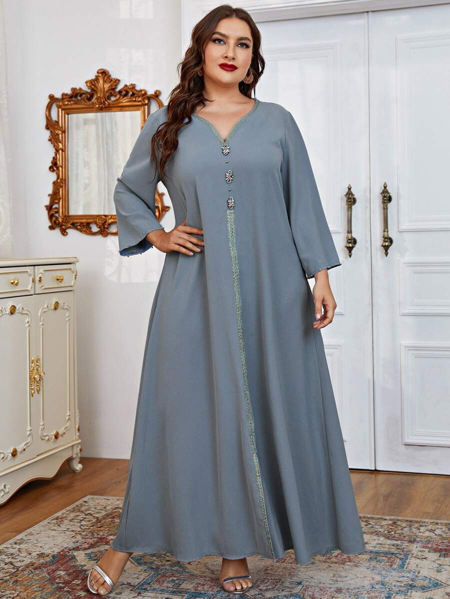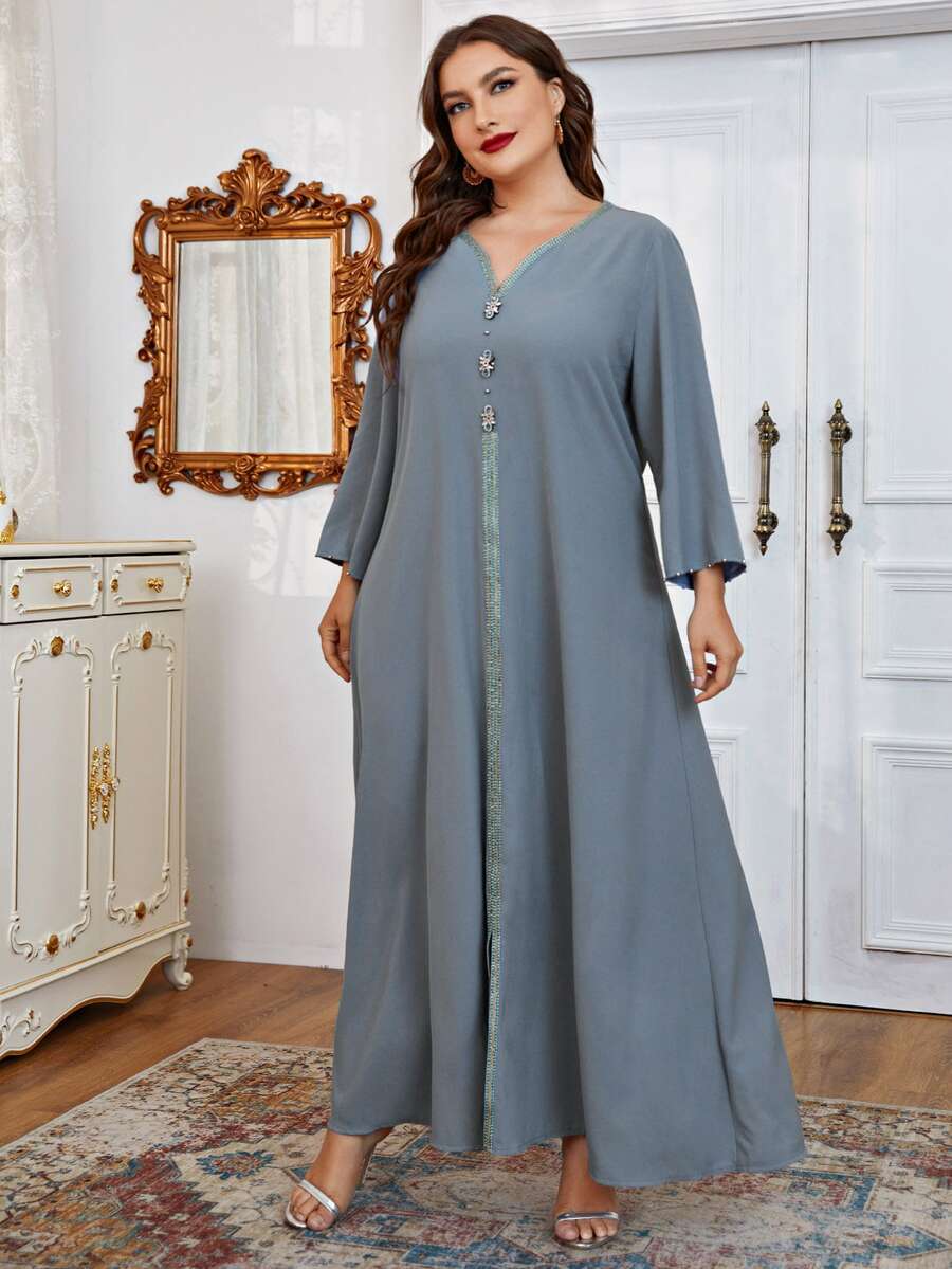 فساتين مقاسات كبيرة حجر الراين شريط أنيقة محتشمة