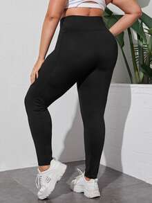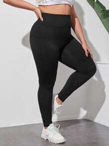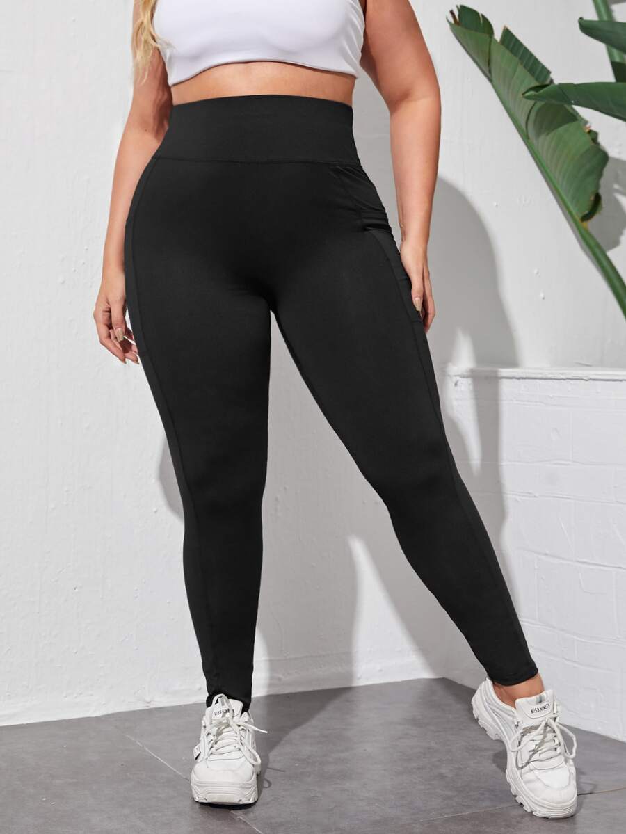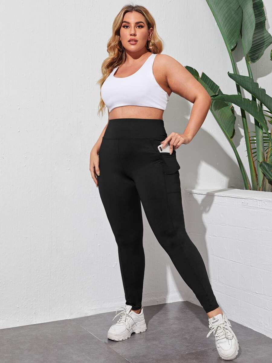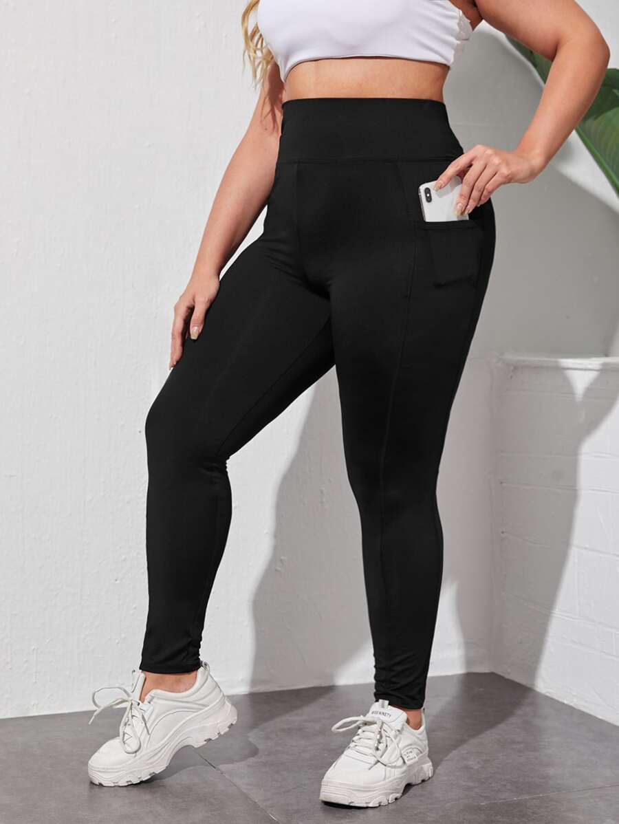 طماق بلون موحد بجيب هاتف وبخصر عريض مقاس كبير