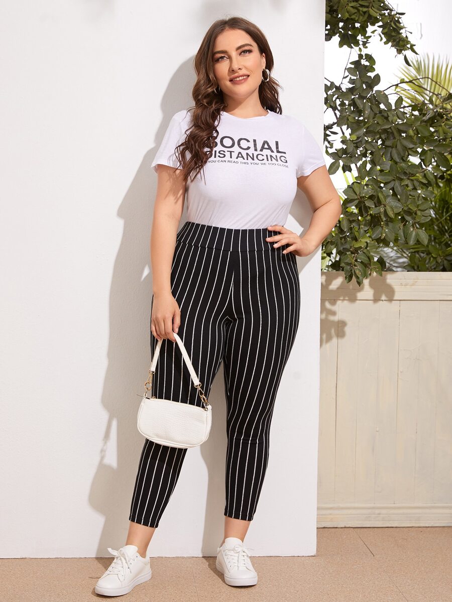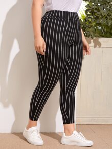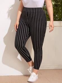 طماق مقاس كبير مخطط بخصر بشريط عريض