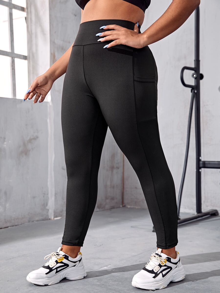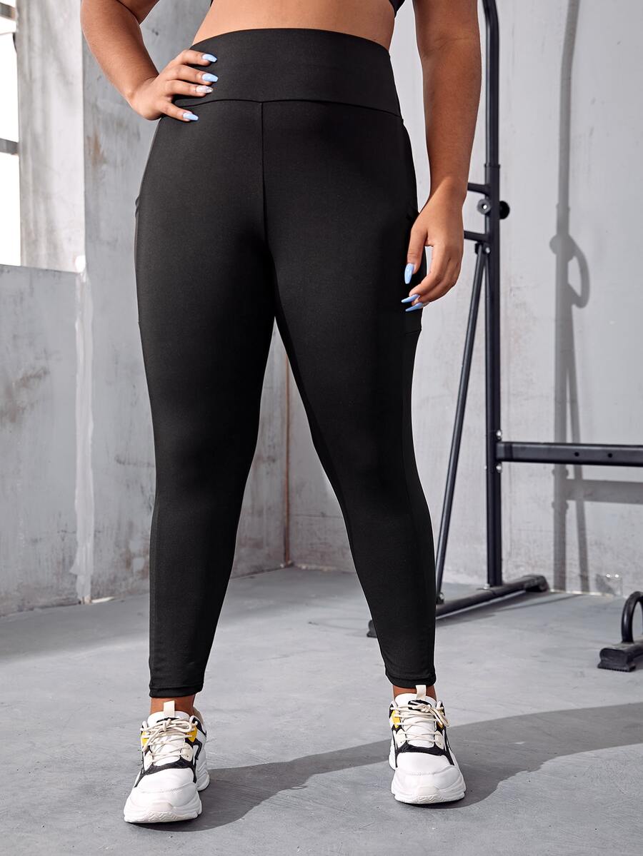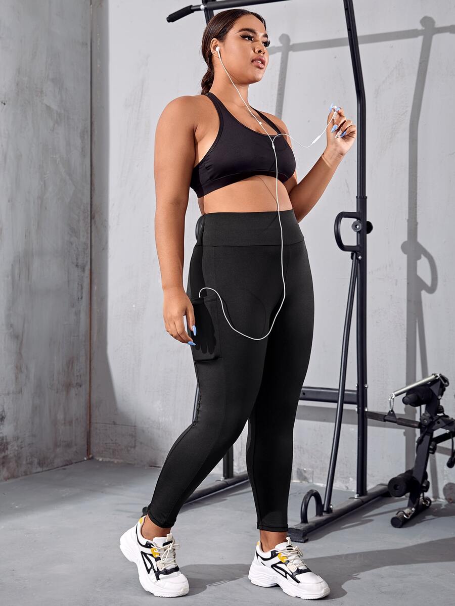 ليقينز رياضي بشريط خصر عريض مقاس كبير مع جيب هاتف