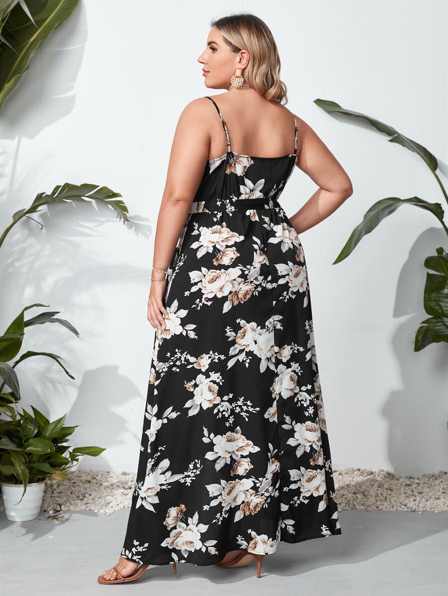 فستان كامي مزهر بتفاصيل مطوي مقاس كبير