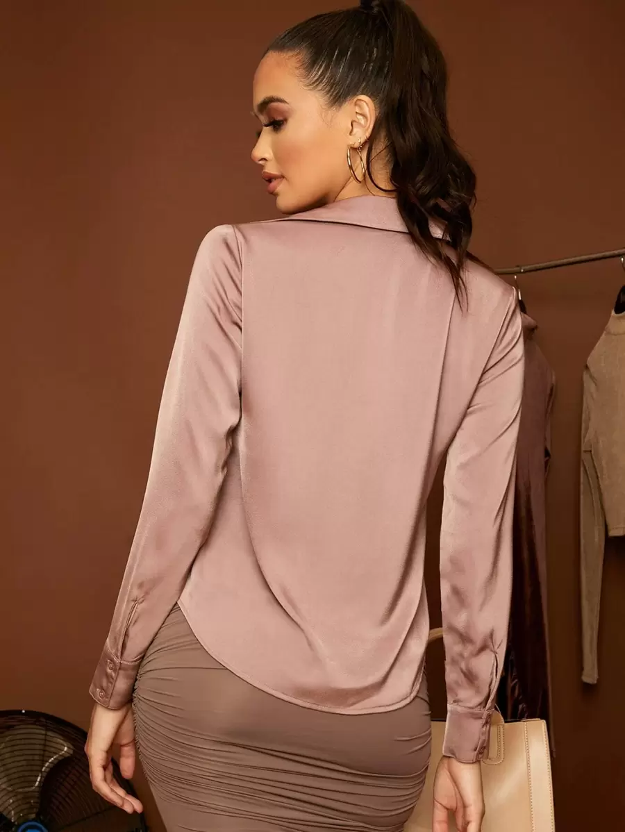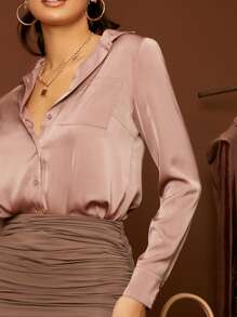 قميص بجيب أمامي أحادي اللون، ملابس علوية ذوي الأكمام الطويلة