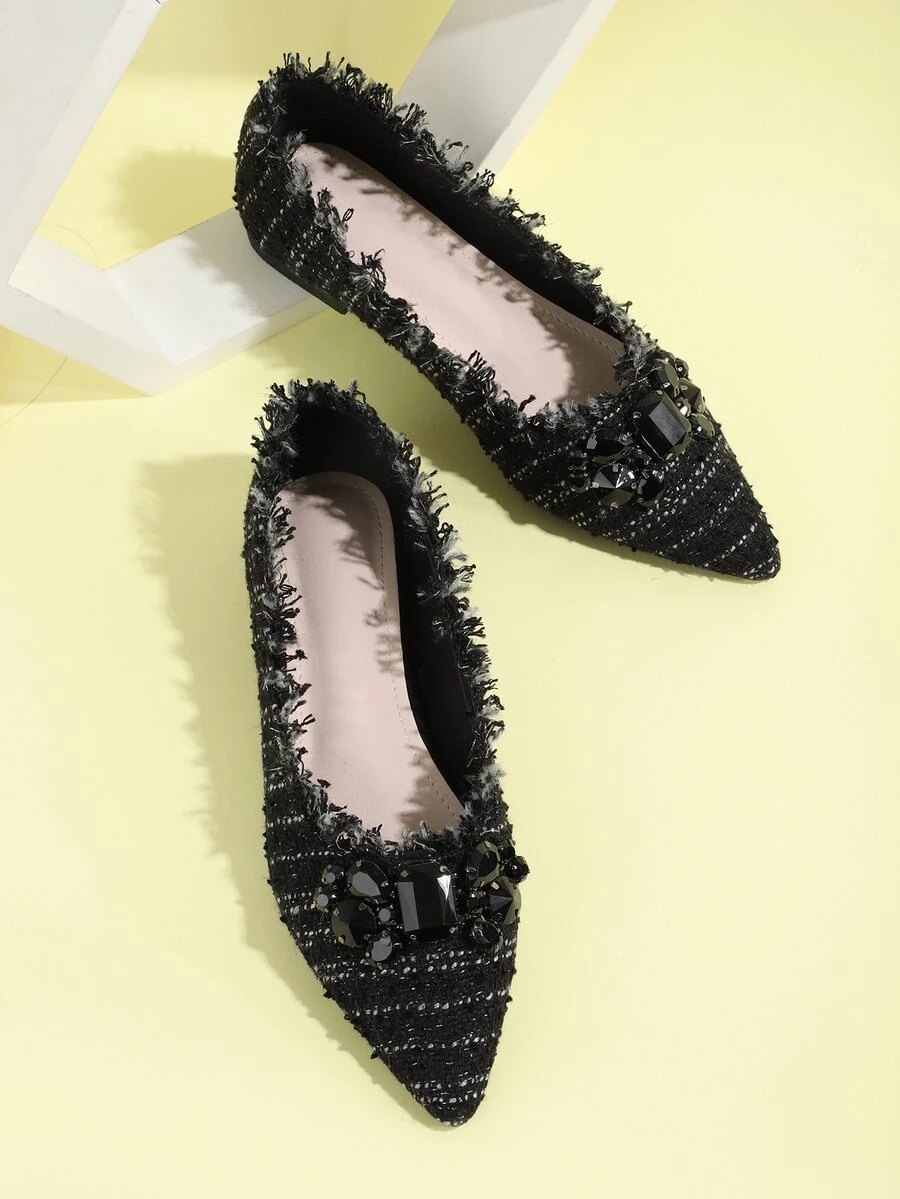 حذاء مسطح بديكور مجوهرات وبمقدمة مدبب