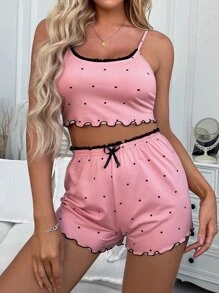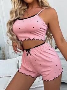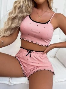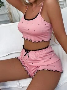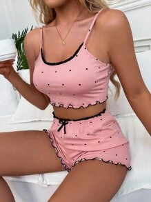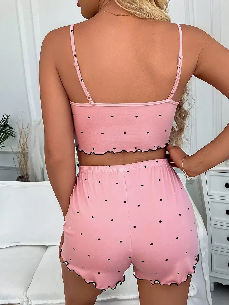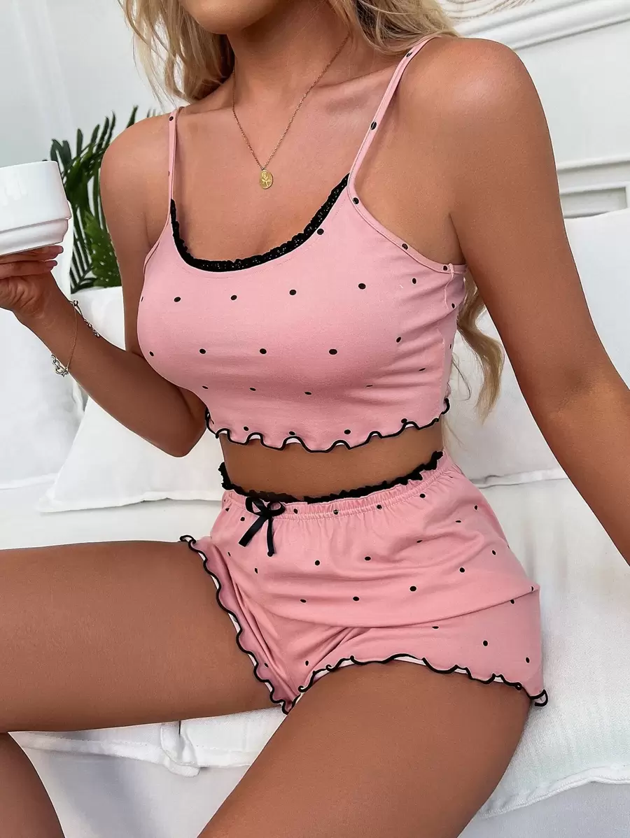 بطباعة نقاط البولكا مقلم نمط نبات الخس شريط دانتيل صدرية كامي و عقدة الفراشة أمامية بنطلون قصير طقم بيجامة