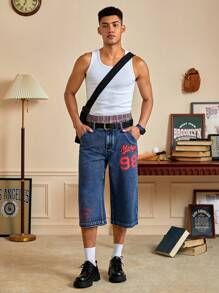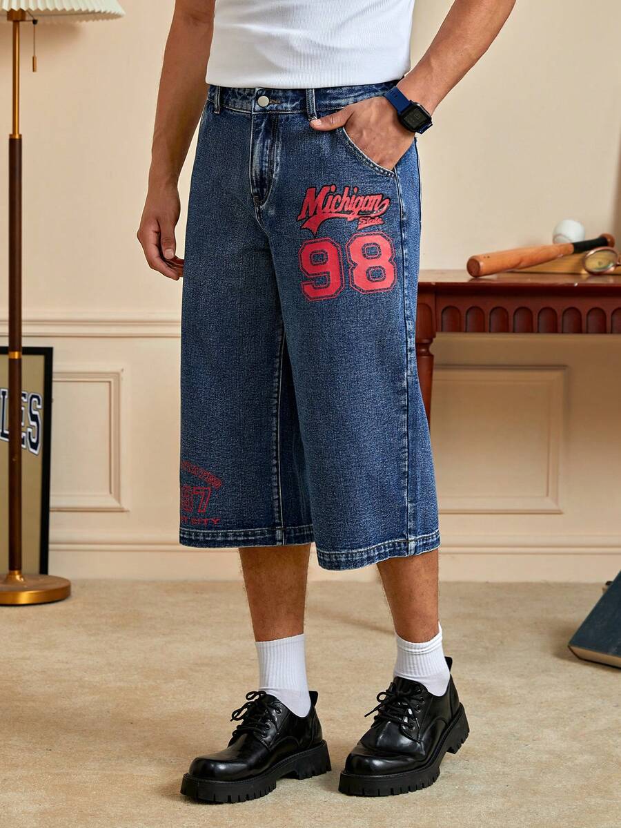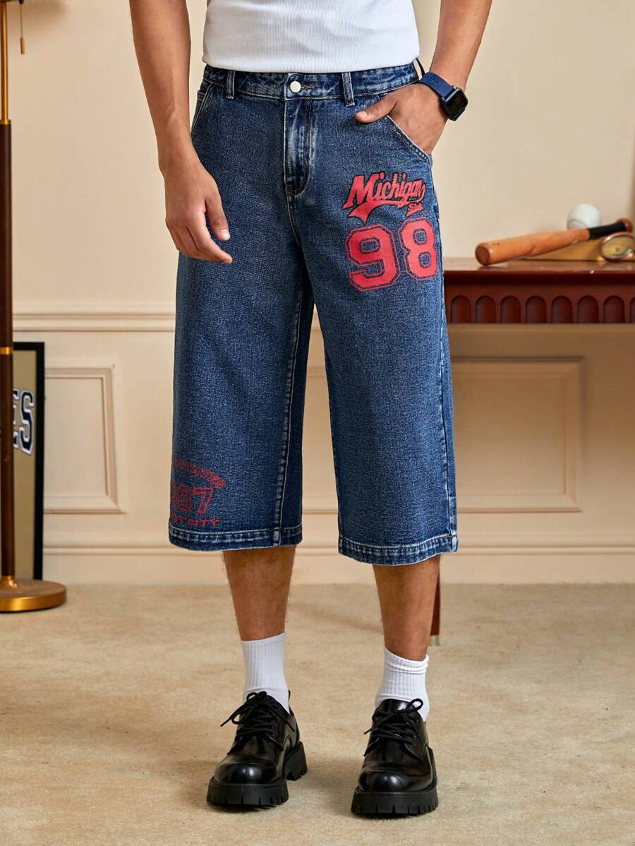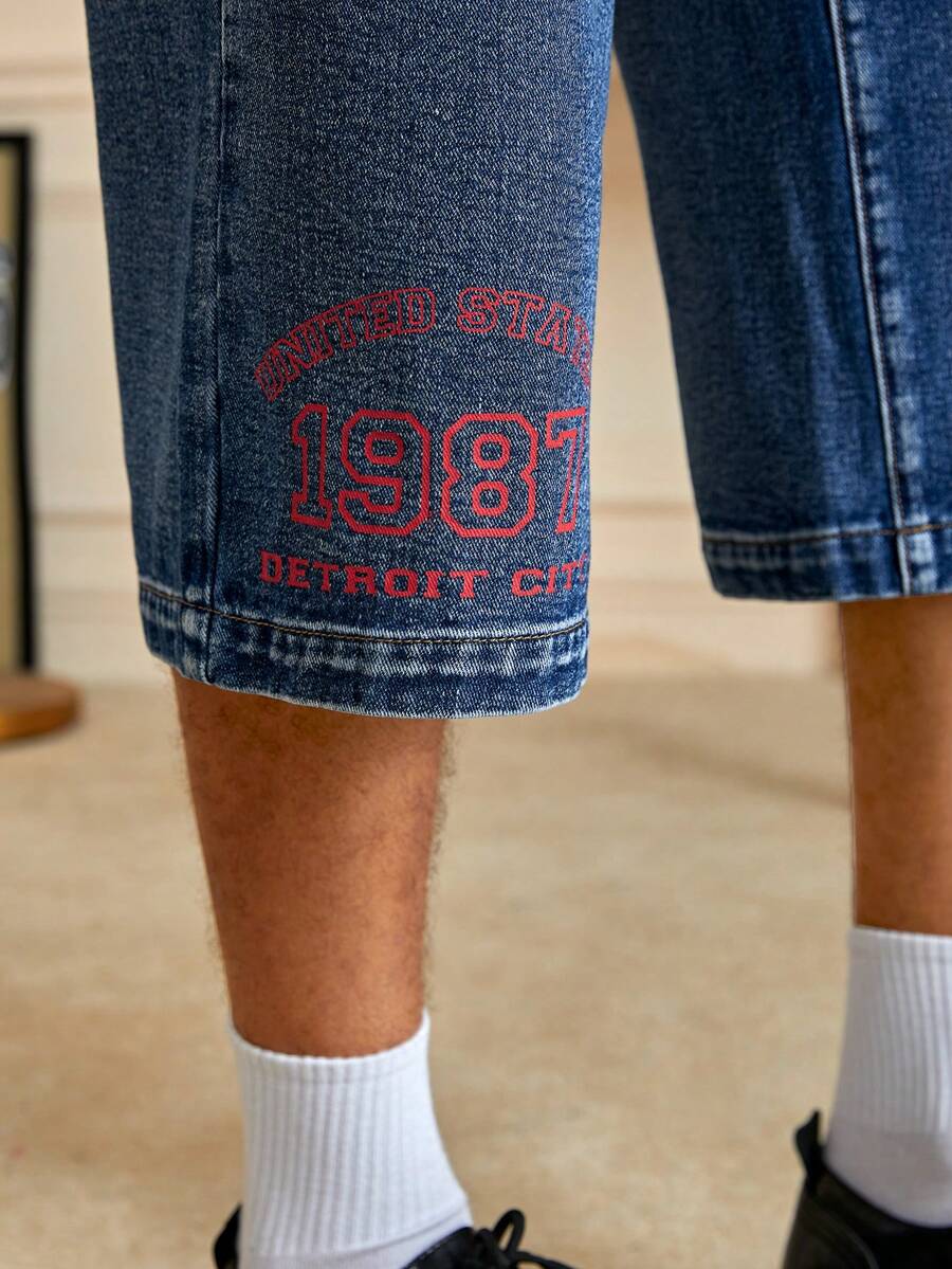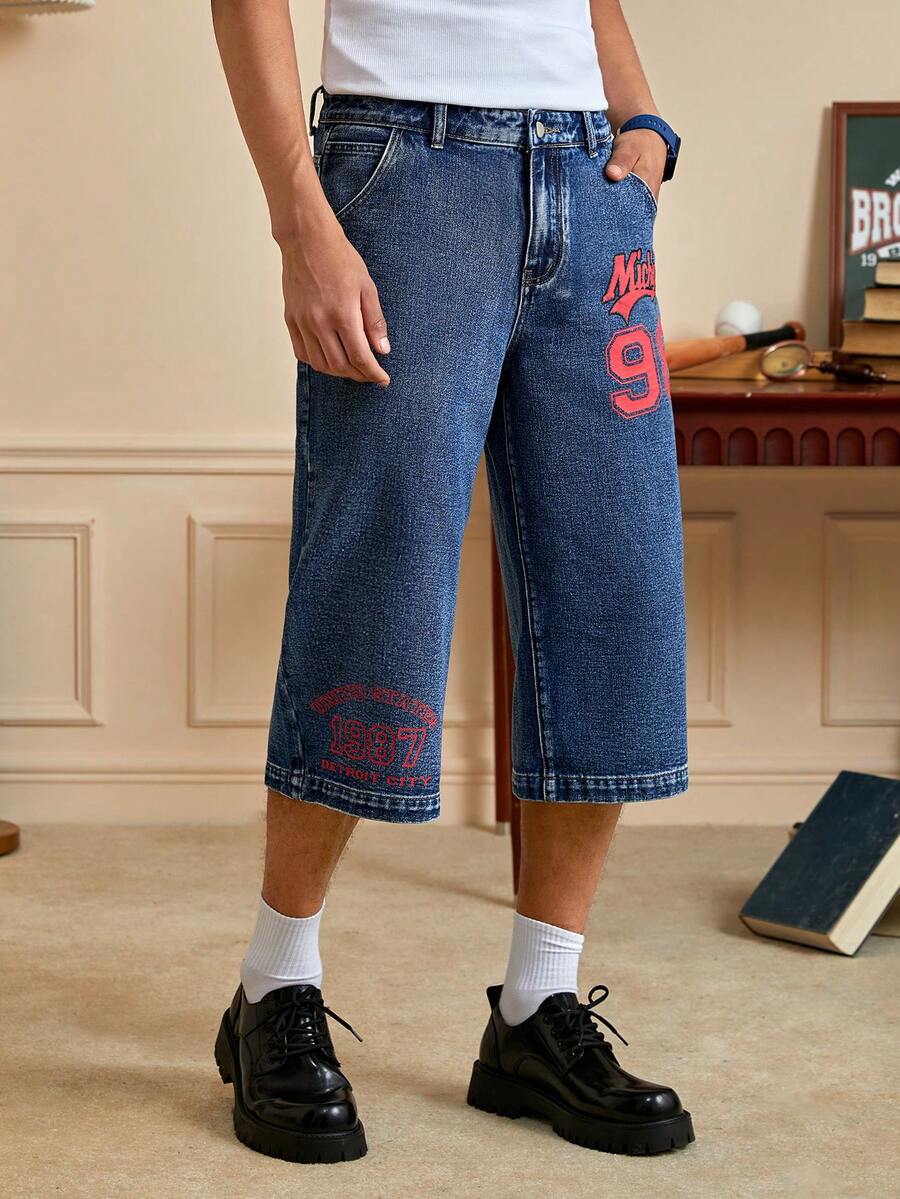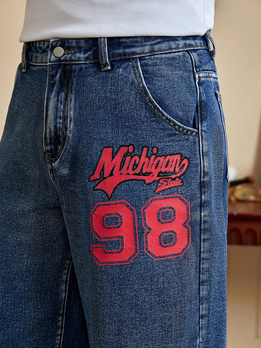 Prep بنطلون جينز بطباعة أحرف للشباب