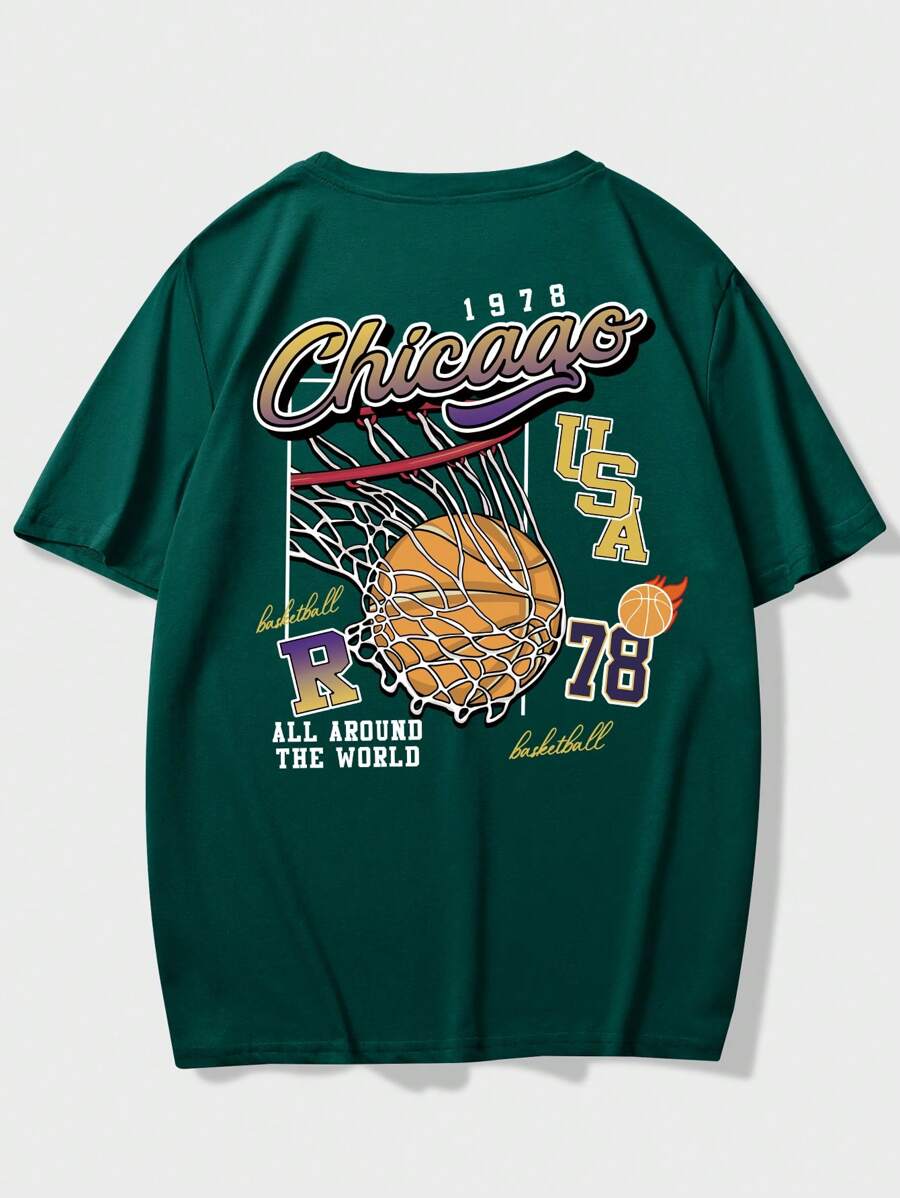Prep تيشرت رجالي بطباعة كرة السلة والحرف، مدرسة
