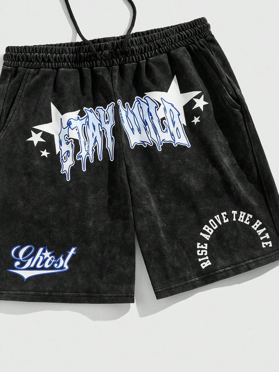 Prep شورت كاجوال للرجال برباط في الخصر، مطبوع بحرف وخماسي النجوم، كاجوال للمدرسة