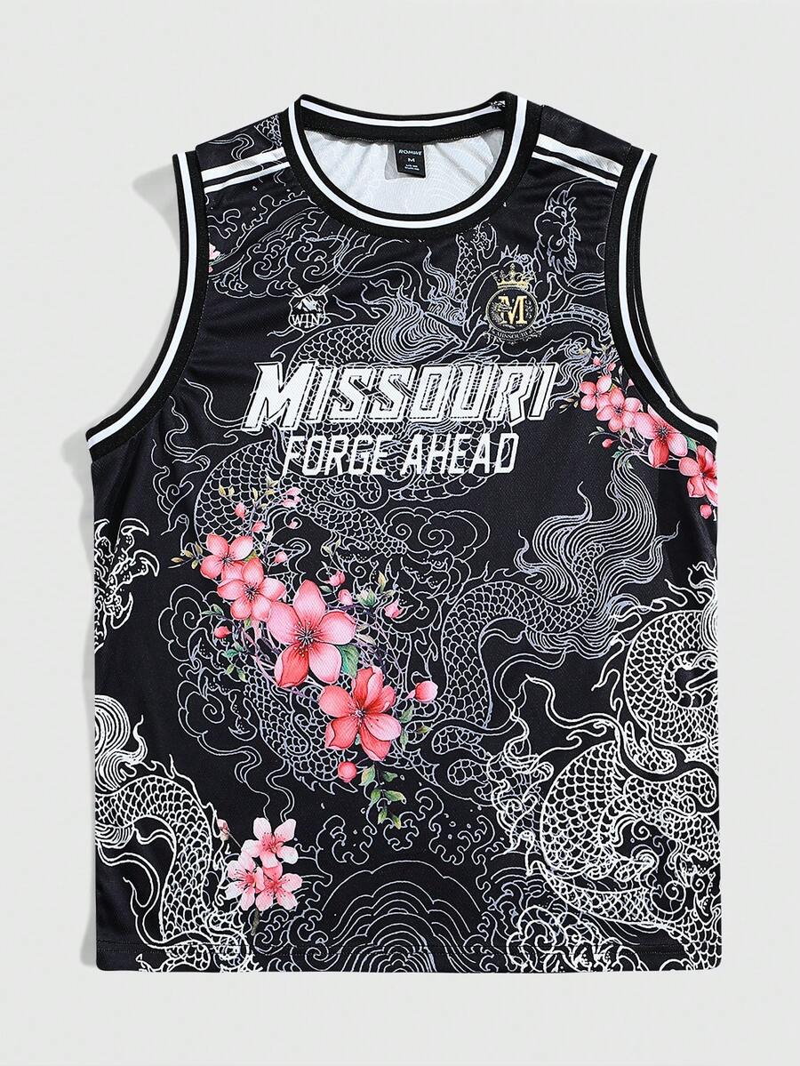 Prep ملابس علوية كاجوال بطبعات زهور وحروف بياقة دائرية للرجال