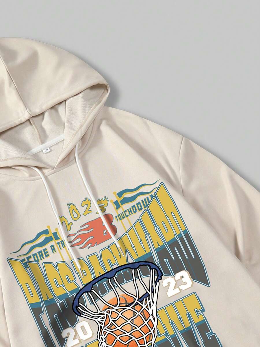 Prep كنزة هودي رجالية برباط للربط ونمط مطبوع
