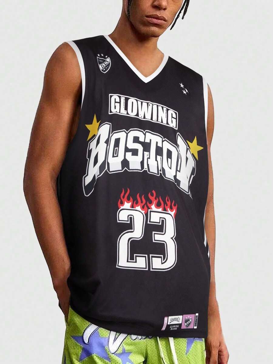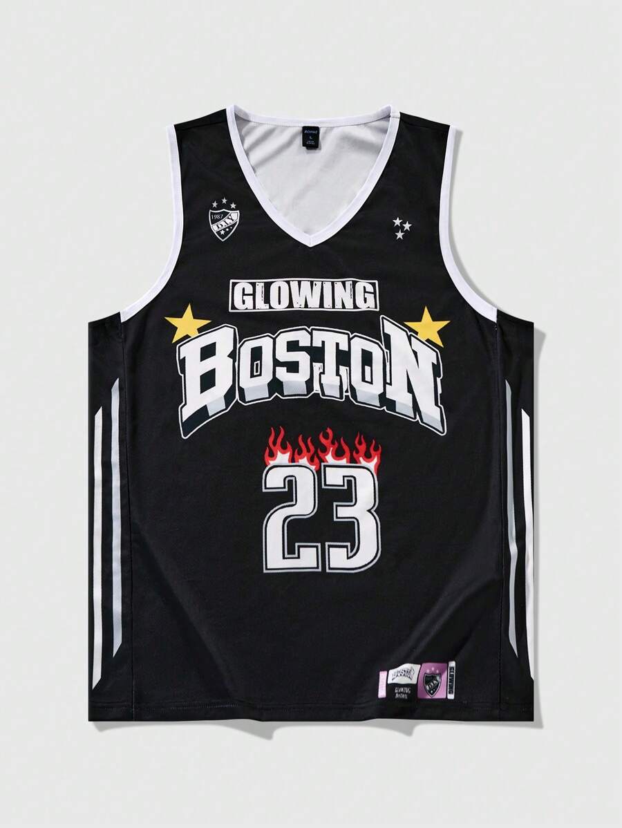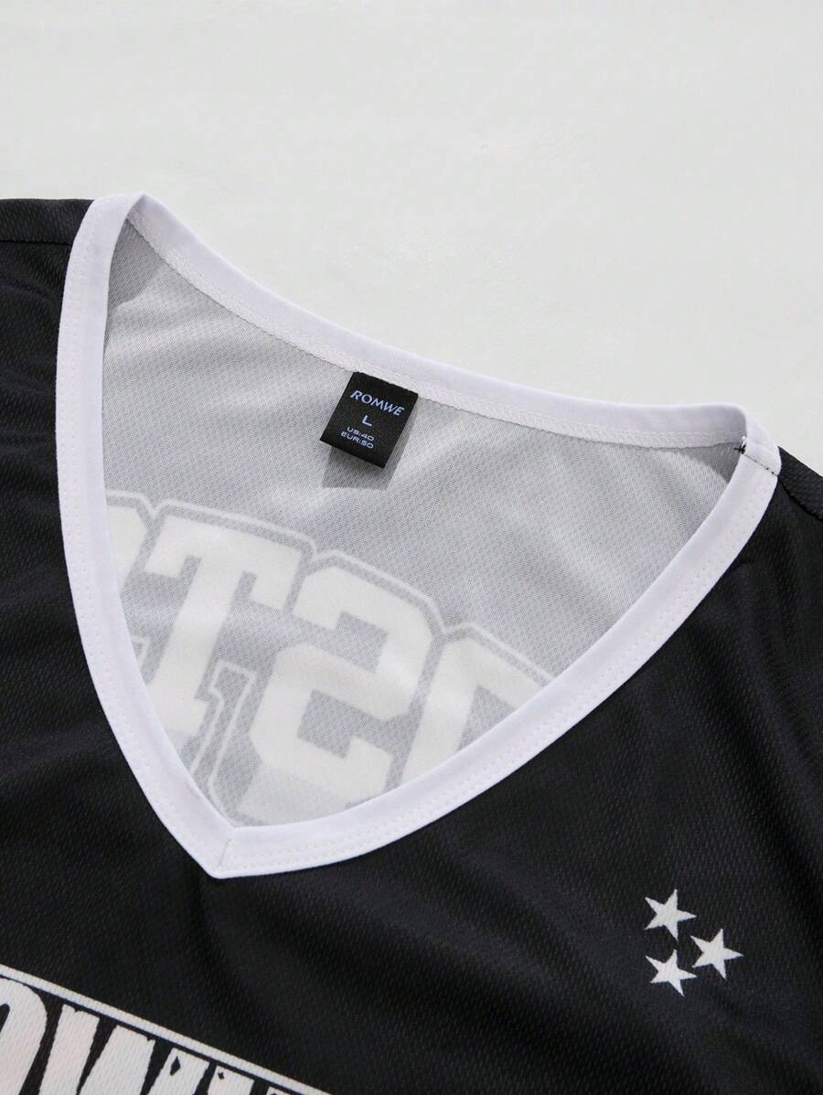 Prep ملابس علوية رياضي بطبعة حرفية على الرقبة على شكل حرف V للسلة بلايب