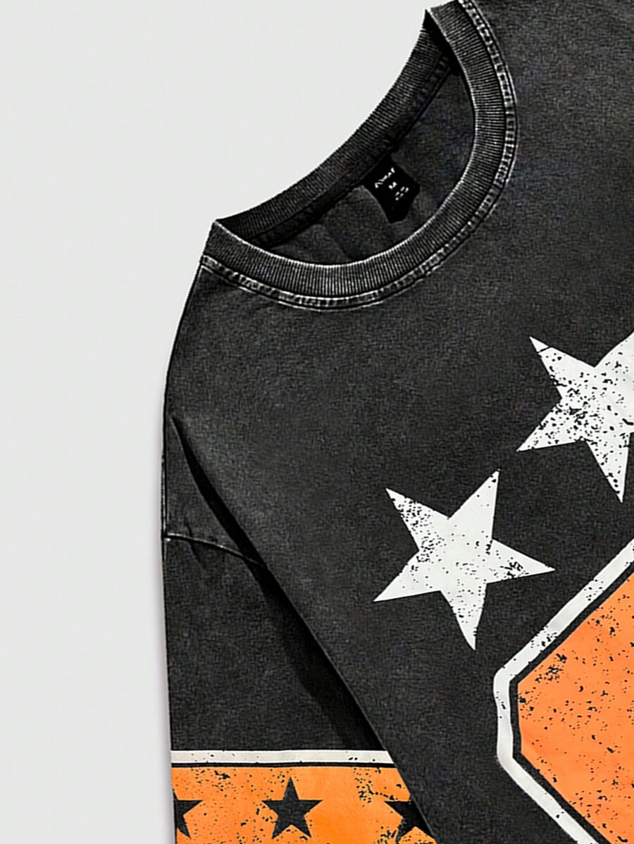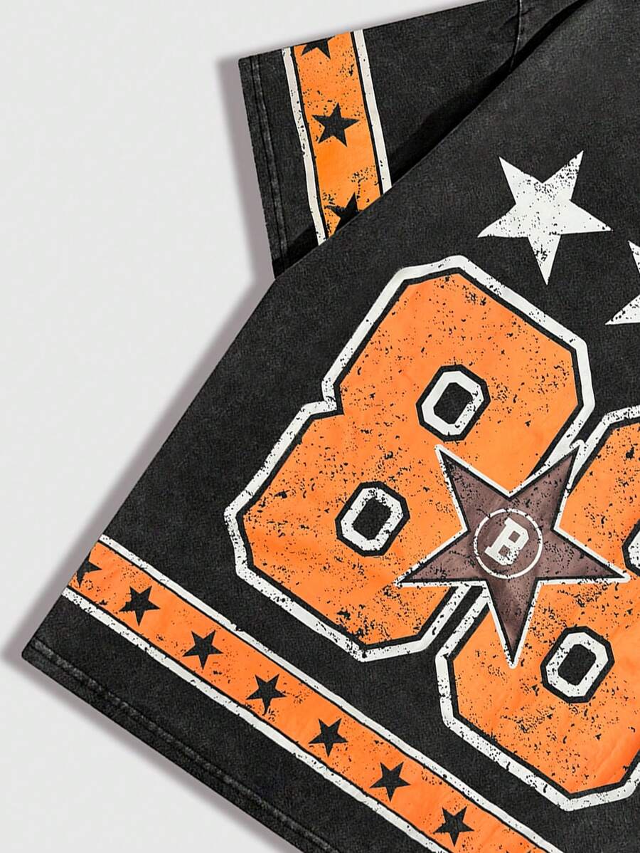 Prep تي شيرت رجالي كاجوال بياقة دائرية وأكمام قصيرة بطباعة أرقام بأسلوب تريكو كرة القدم