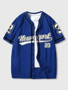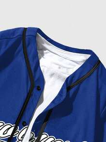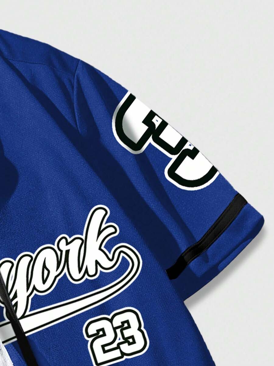 Prep قميص كاجوال رجالي واسع الحمل بنمط طباعة شعار المدينة بأكمام قصيرة وأحادي الصدر