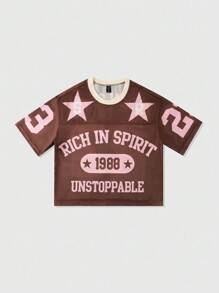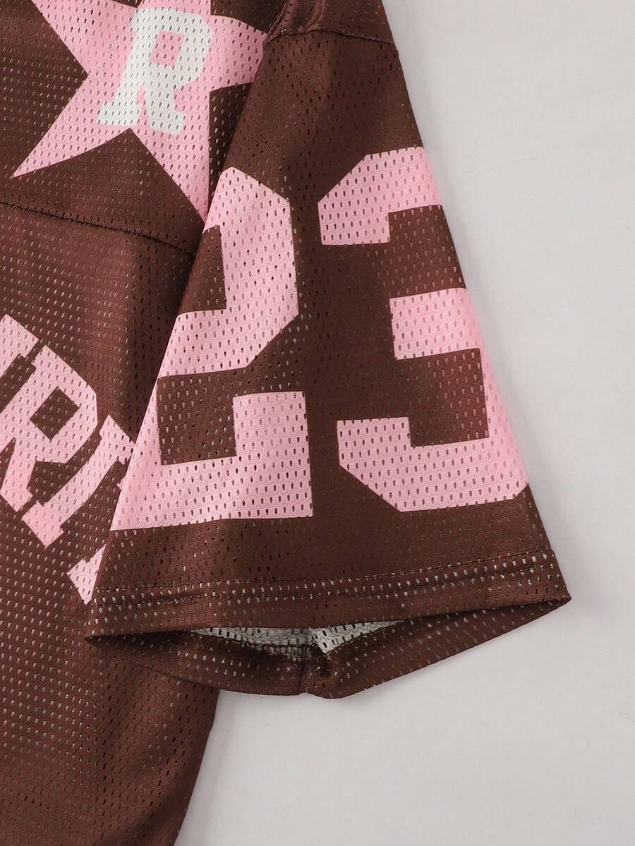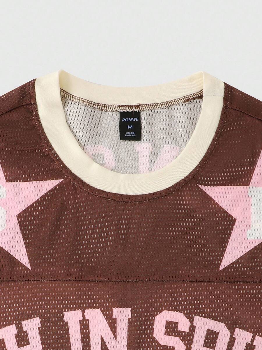 Prep قميص رياضي قصير الأكمام من قماش الشبكة مع طباعة شعار