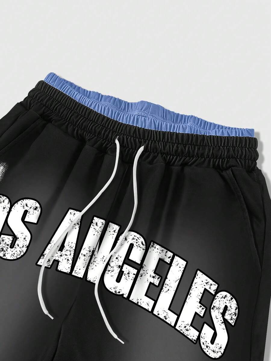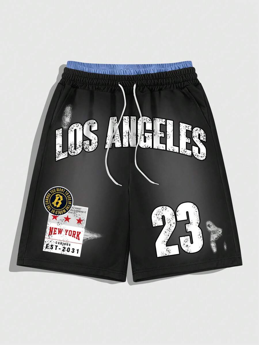 Prep صباح البنطال الصيفي القصير للرجال بخصر رباط وطبعات حرفية