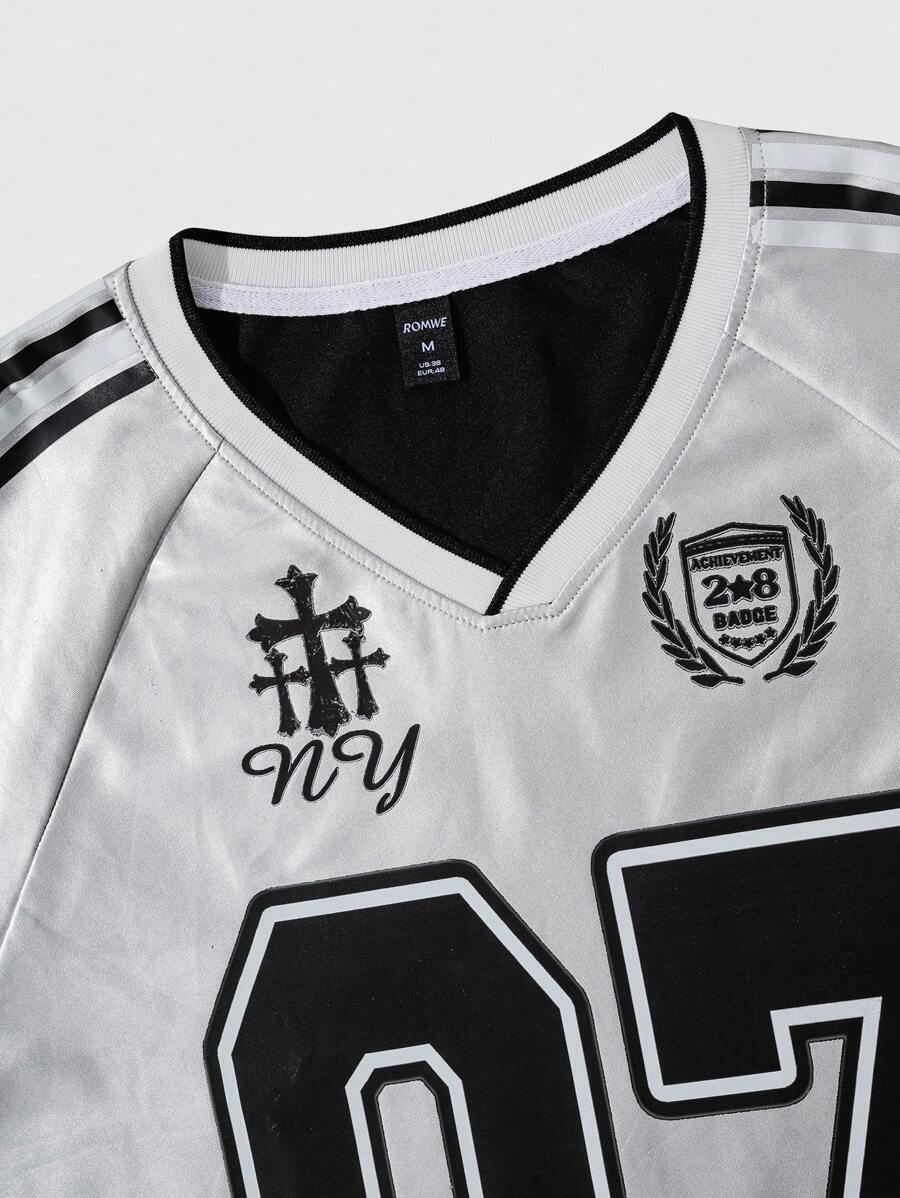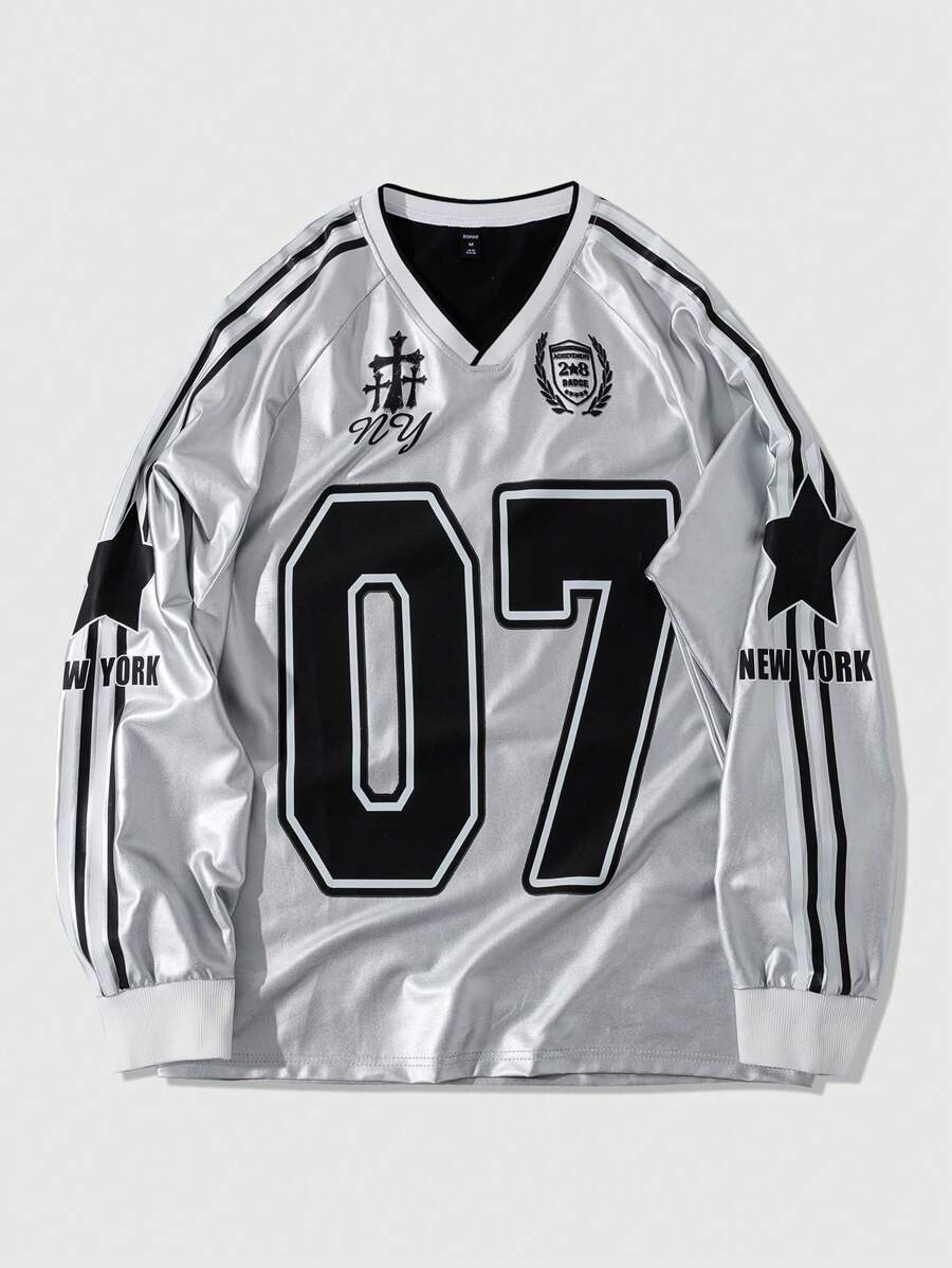 Prep سويت شيرت رجالي لون أحادي مع لوحة الحشو وياقة على شكل V وأكمام طويلة وطباعة جرافيك بسيطة