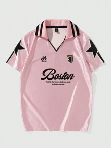 Prep قميص بولو برينت النجمة والشعار للرجال ، مناسب للارتداء اليومي في الربيع والصيف ، المدرسة