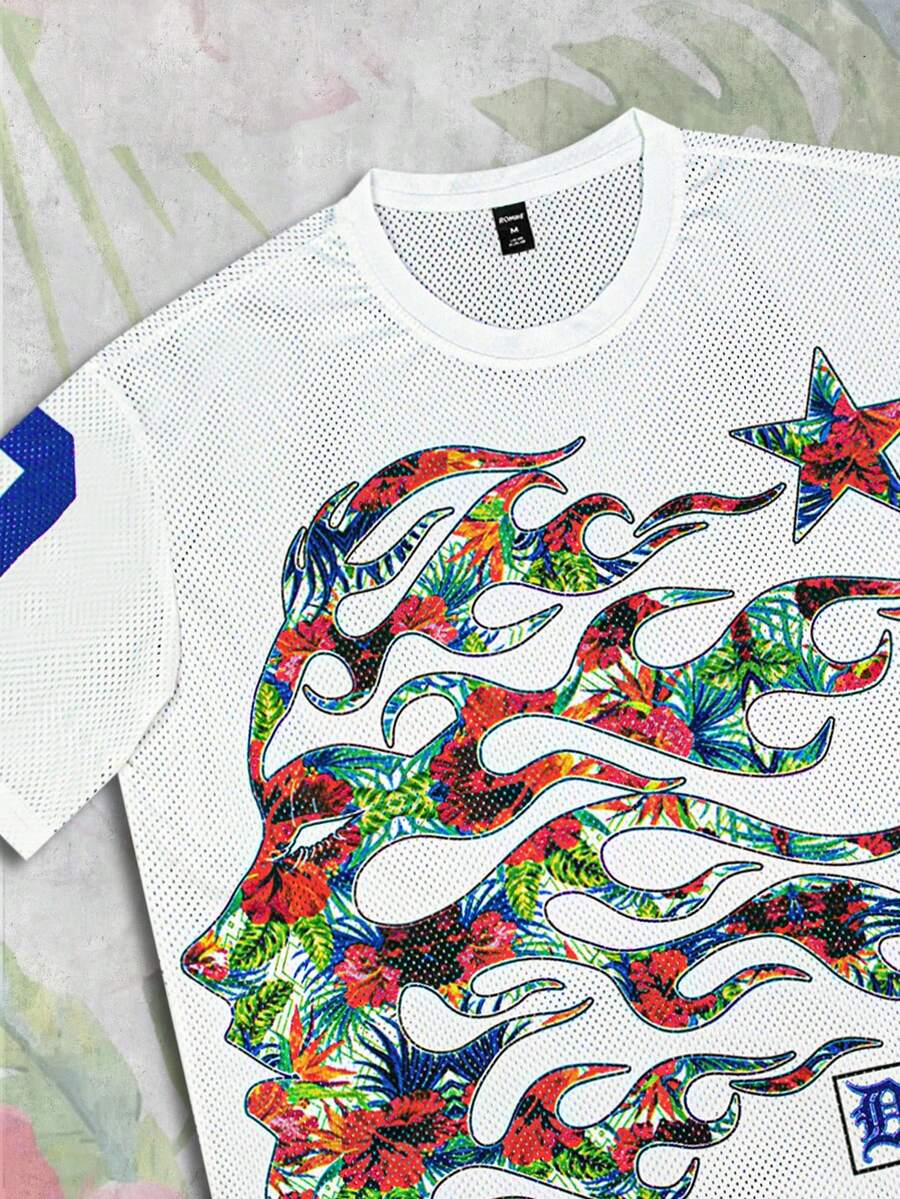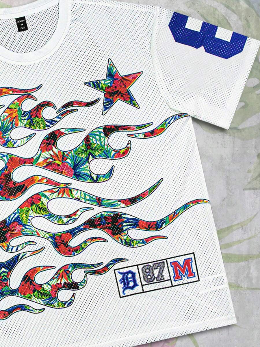 Prep قميص بأكمام قصيرة وياقة مستديرة طباعة ملابس الشارع رجالي