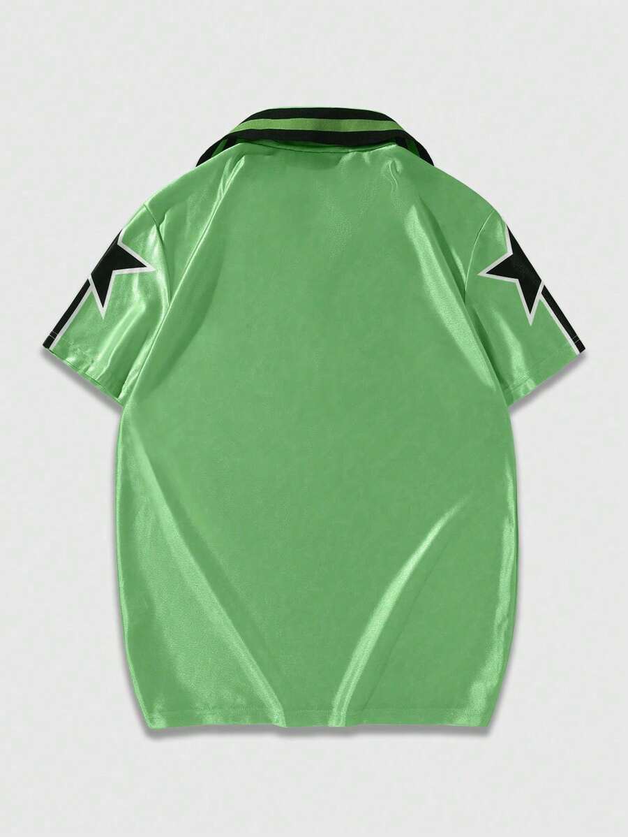 Prep قميص بولو بأكمام قصيرة وطبعات نجمية وشعارات للرجال في الصيف، مناسب للاستخدام اليومي في الربيع / الصيف