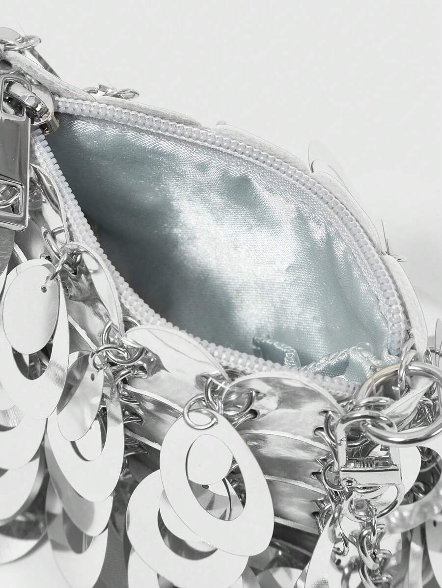 ROMWE Avant حقيبة كتف حريمي فضية ذات طراز أنيق مناسبة للحفلات، الاستخدام اليومي العادي وعيد الحب قطعة واحدة