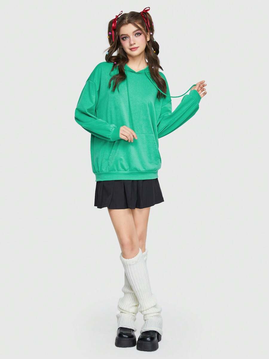 ROMWE Avant منخفض الاكتاف رباط هودي & تنورة ذو تجاعيد