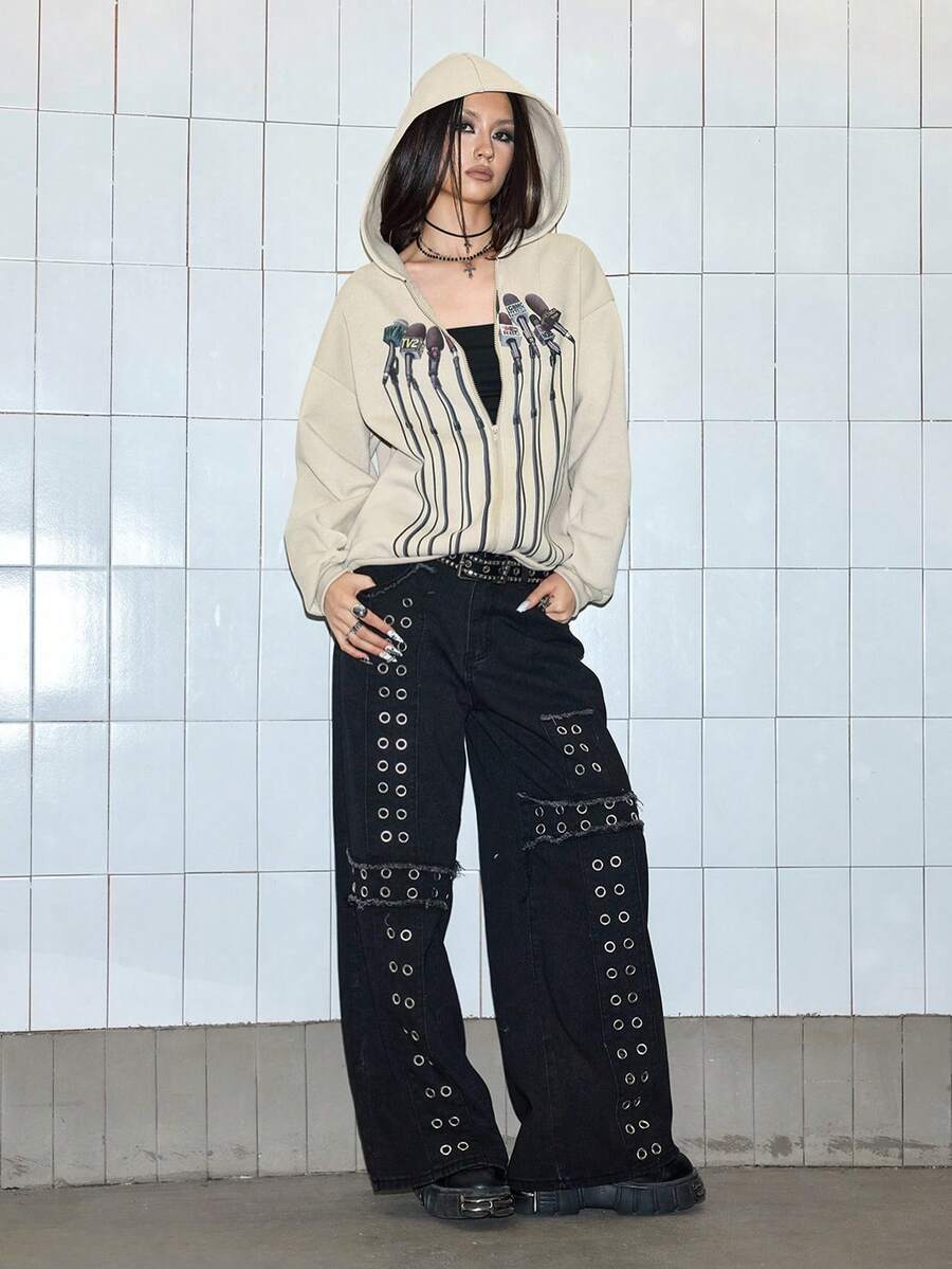 ROMWE Avant هودي مطبوع بتصميم ميكروفون محاكي للمقابلة الضاحكة