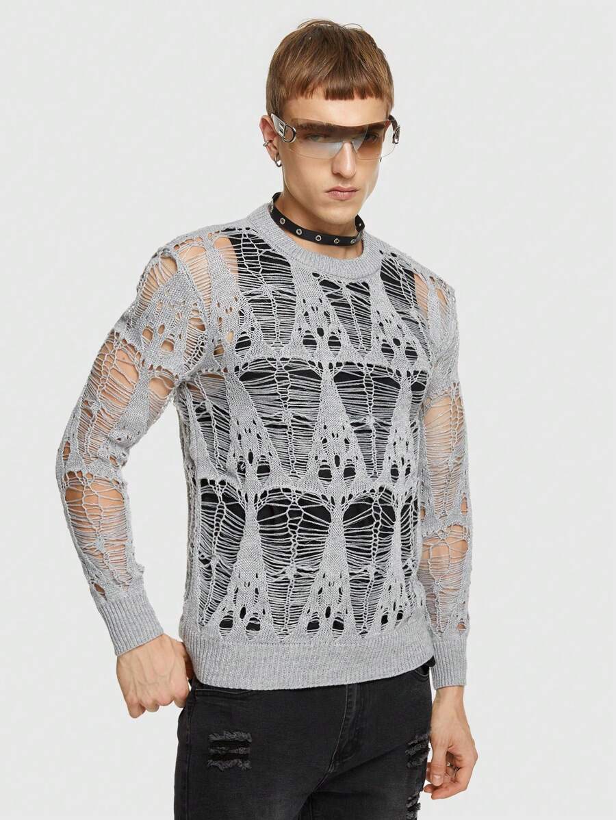 ROMWE Avant كنزة صوف محبوك مفتوح للشباب