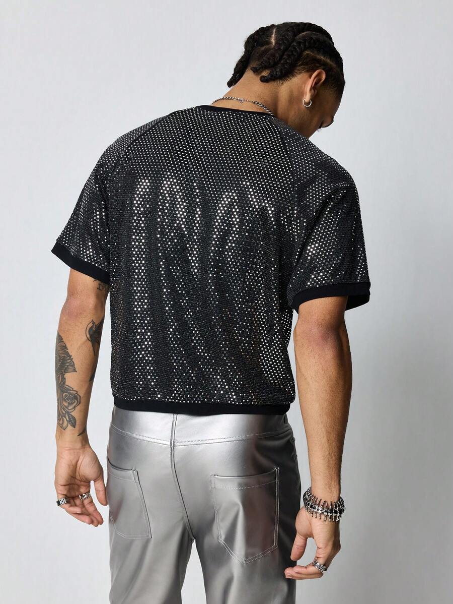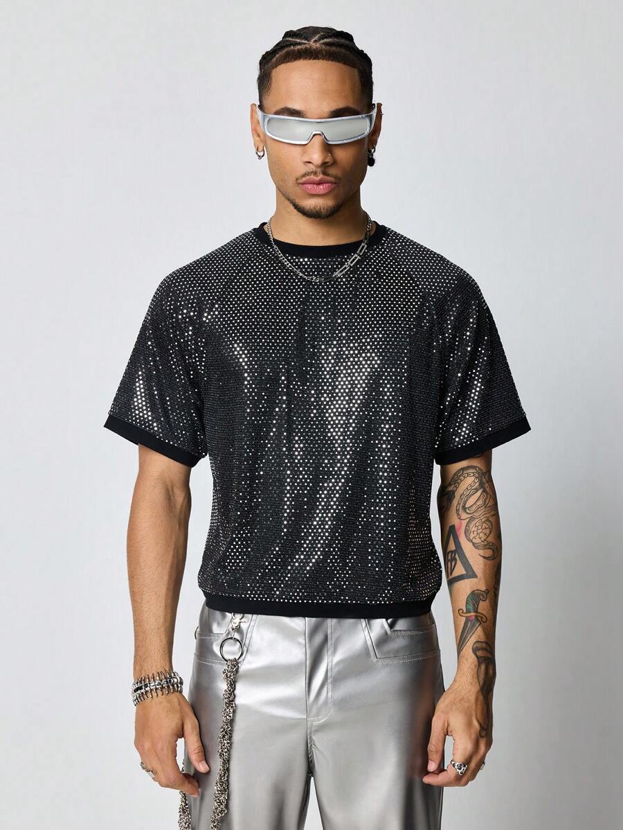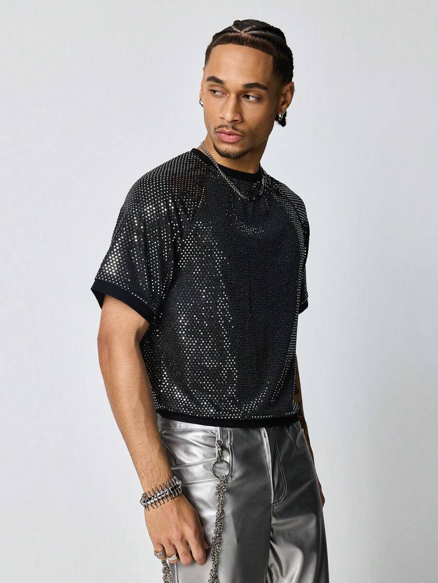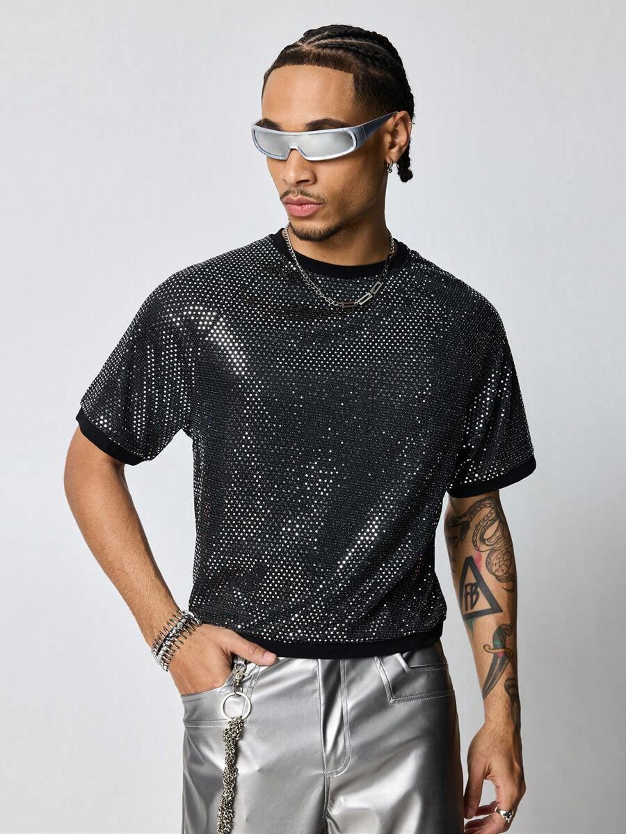 ROMWE Avant تي شيرت رجالي قصير الأكمام ضيق، بياقة من النوع الدائري، قصير الطول