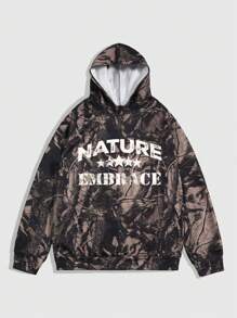ROMWE Avant بلوزة رياضية هودي كاجوال للرجال مطبوع عليها غصن شجرة وحرف الربيع والخريف