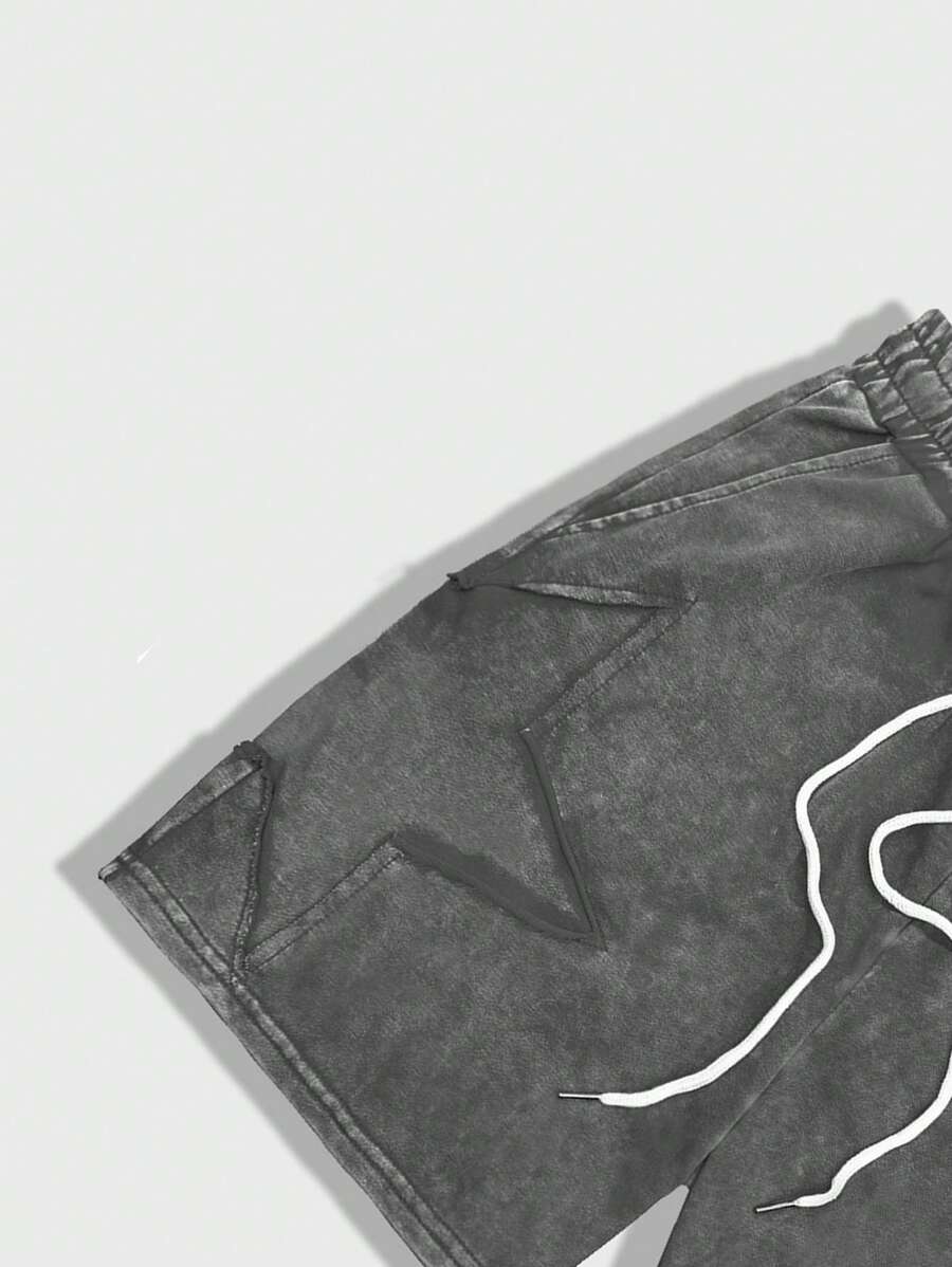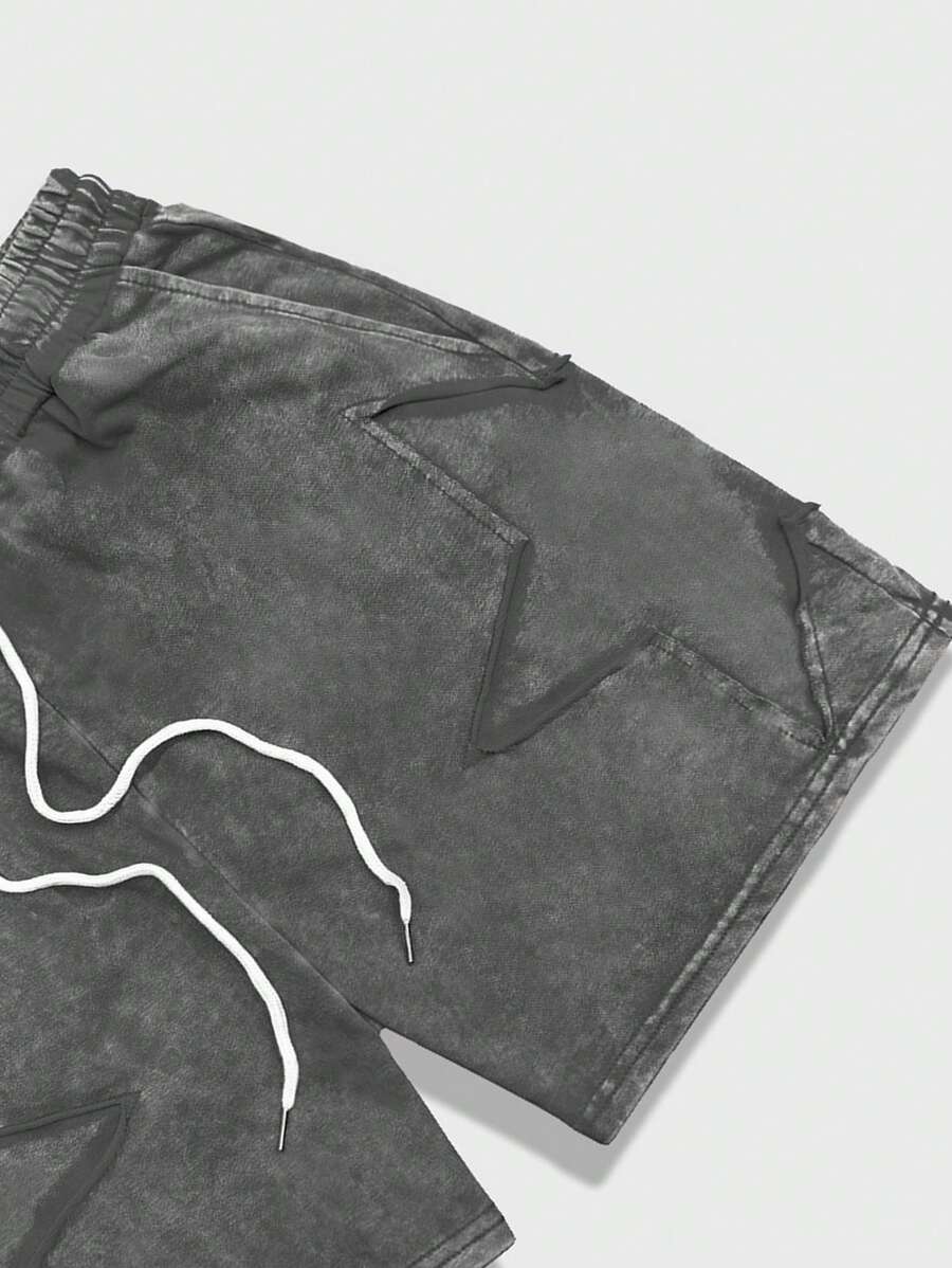 ROMWE Avant شورت رجالي بجيب نجمي بسيط مع ربطة أمامية، كاجوال يومي