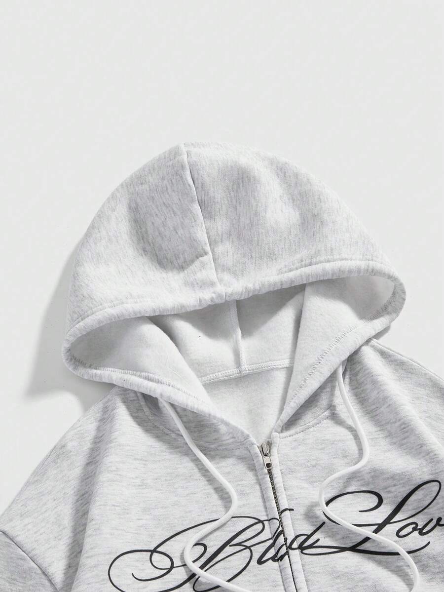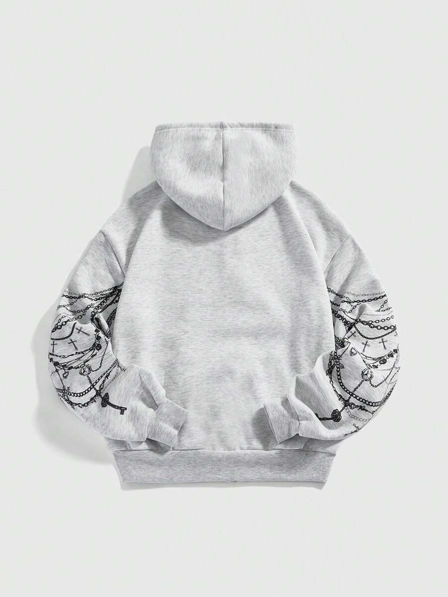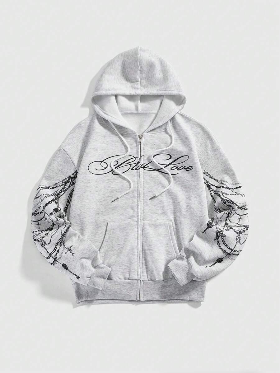 ROMWE Avant سترة رمادية فضفاضة مفتوحة الأمام مطبوعة بسلسلة للنساء، طراز كاجوال شارع Y3K جذاب