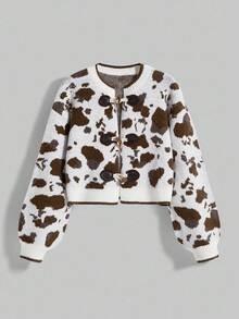 ROMWE Avant كارديجان نسائي كاجوال مطبوع بنمط البقرة بتصميم جاكار مع أزرار قرن، خريف/شتاء