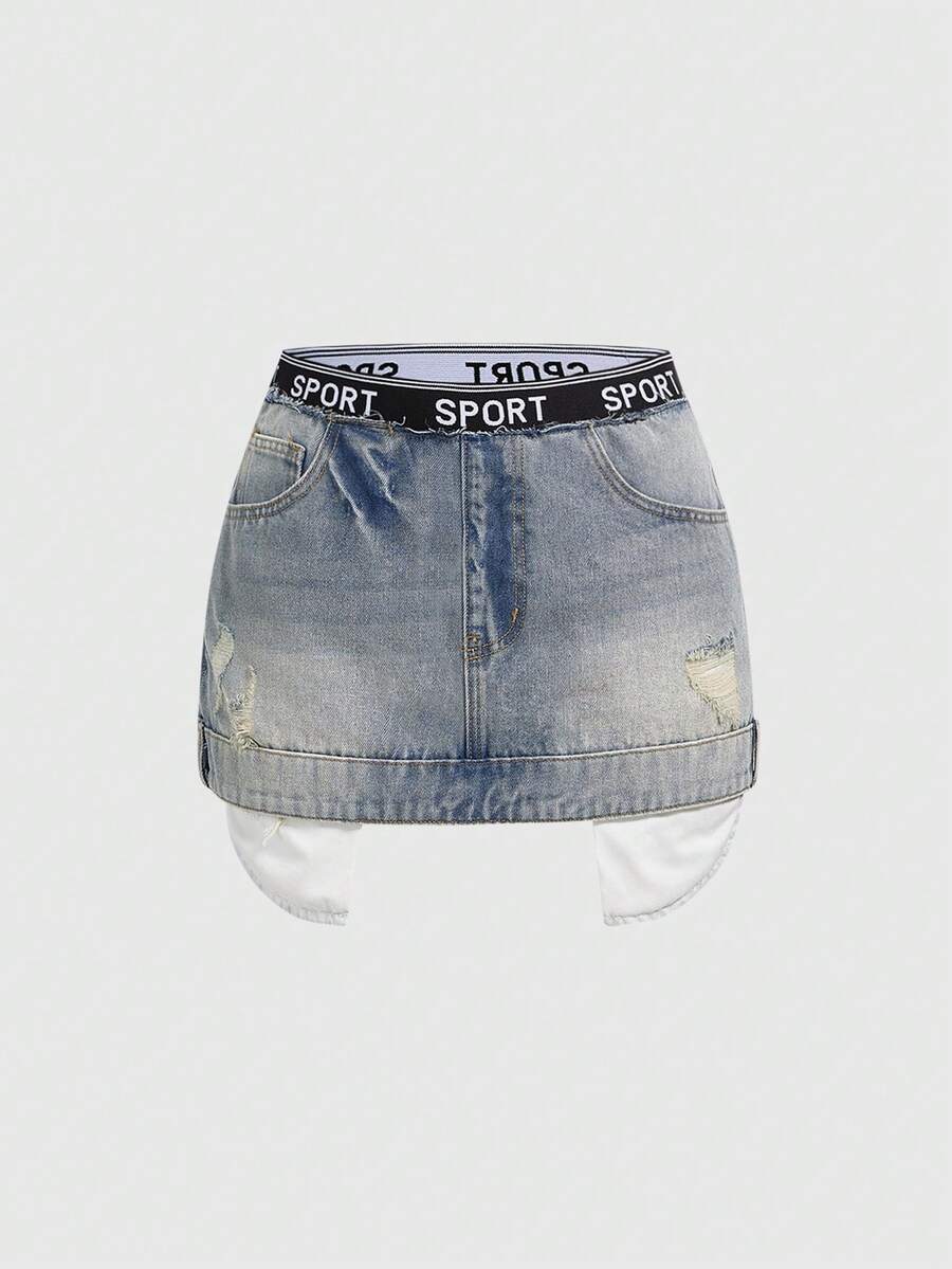 ROMWE Avant تنورة جينز قصيرة ذات خصر منخفض ومطاطي للنساء