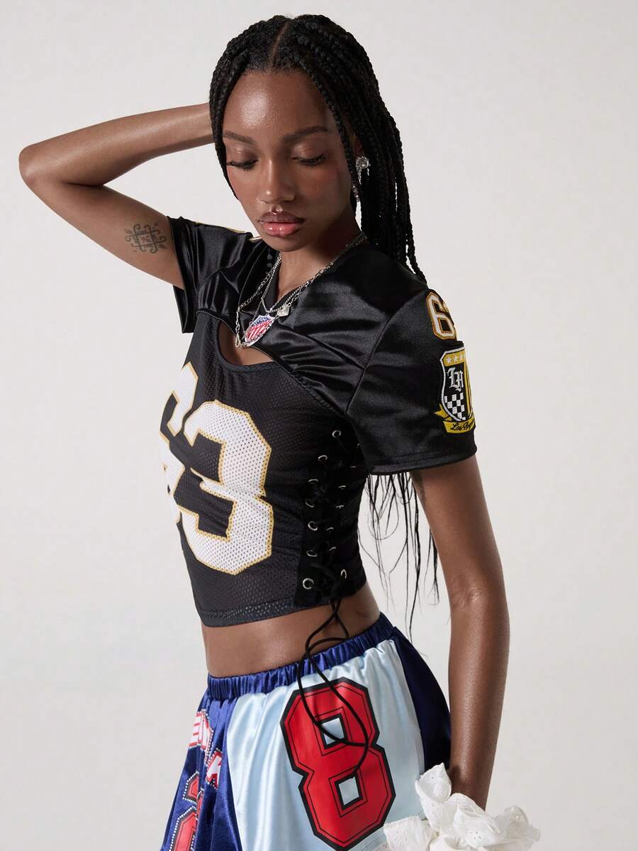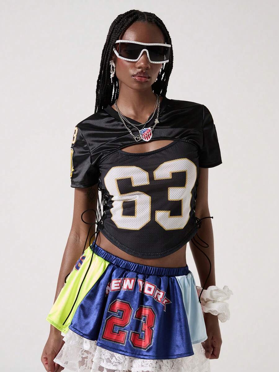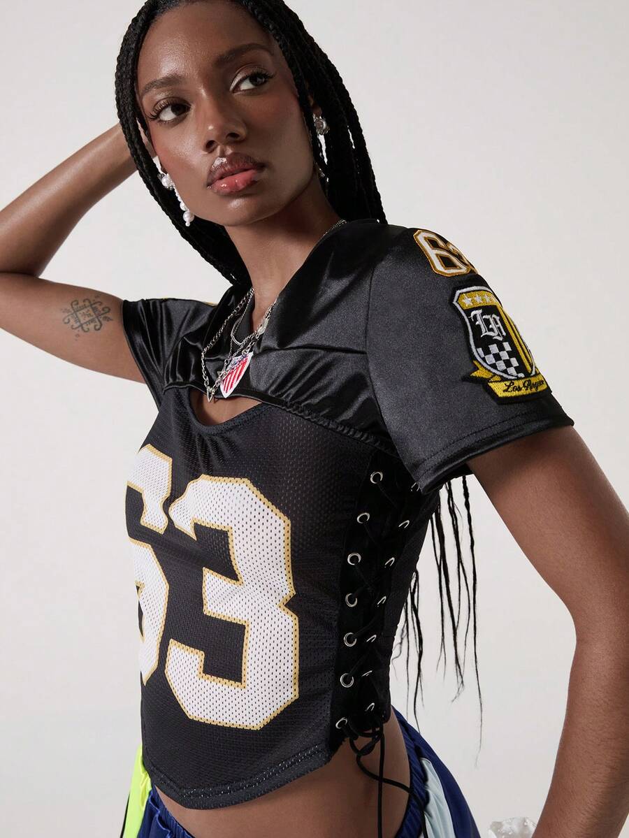 ROMWE Avant قميص رياضي مقصور بأسلوب الشارع للنساء مفرغ من الخارج