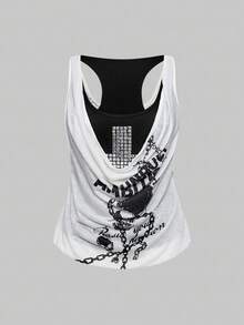 ROMWE Avant ملابس علوية ملابس علوية بطبعة جمجمة وصليب، طبقات من الكشكشة على الذيل، ظهر متقاطع، طراز هاراجوكو جوث بانك للنساء