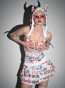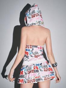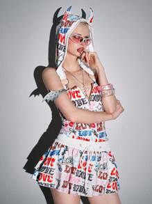 ROMWE Avant فستان منفرط الكشكشة بالأمام بغطاء للرأس من الصوف للنساء على طراز Y2K