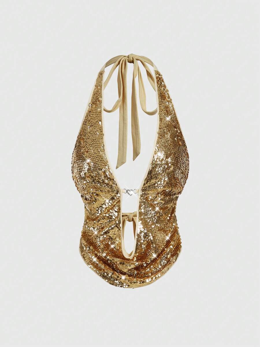 ROMWE Avant توب قصير مزين بالخرز ذو رقبة متدلية للنساء بطراز Y2K الرجعي الجذاب