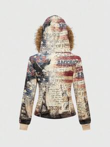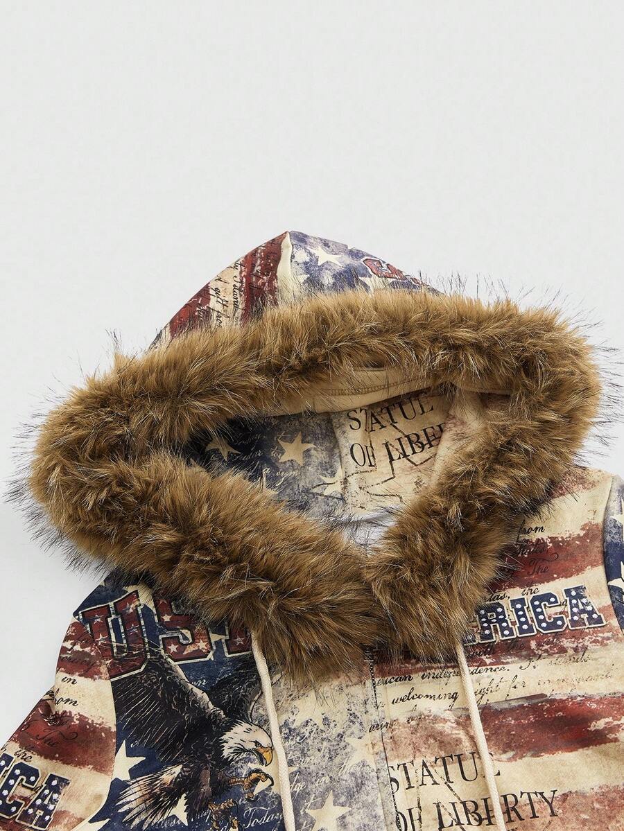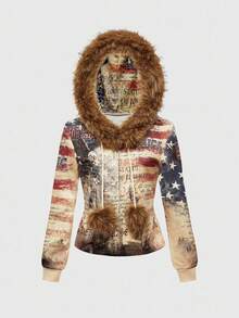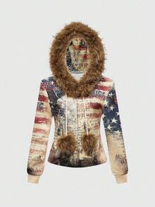 ROMWE Avant بلوزة هودي مطبوعة بنسر وعلم أمريكي مقاس كبير لموضة الشارع Y2K للنساء