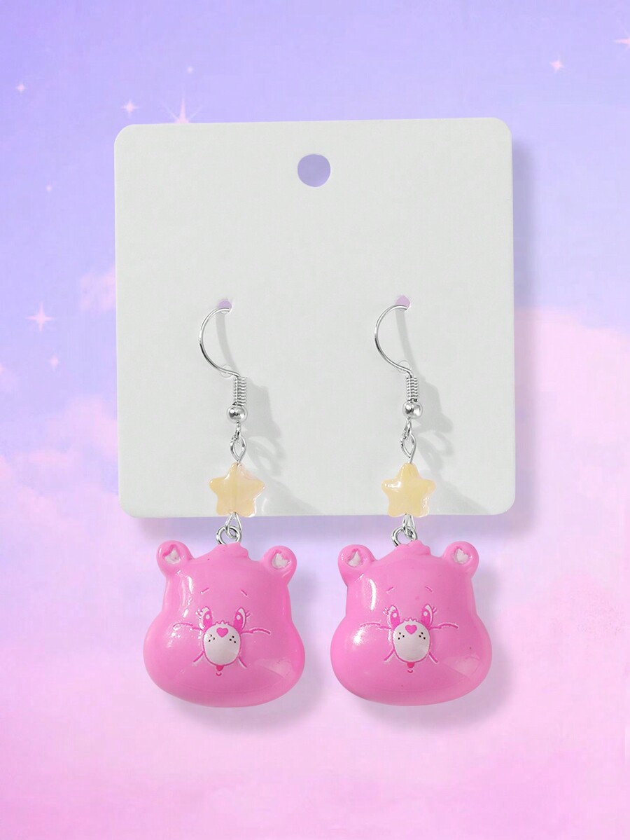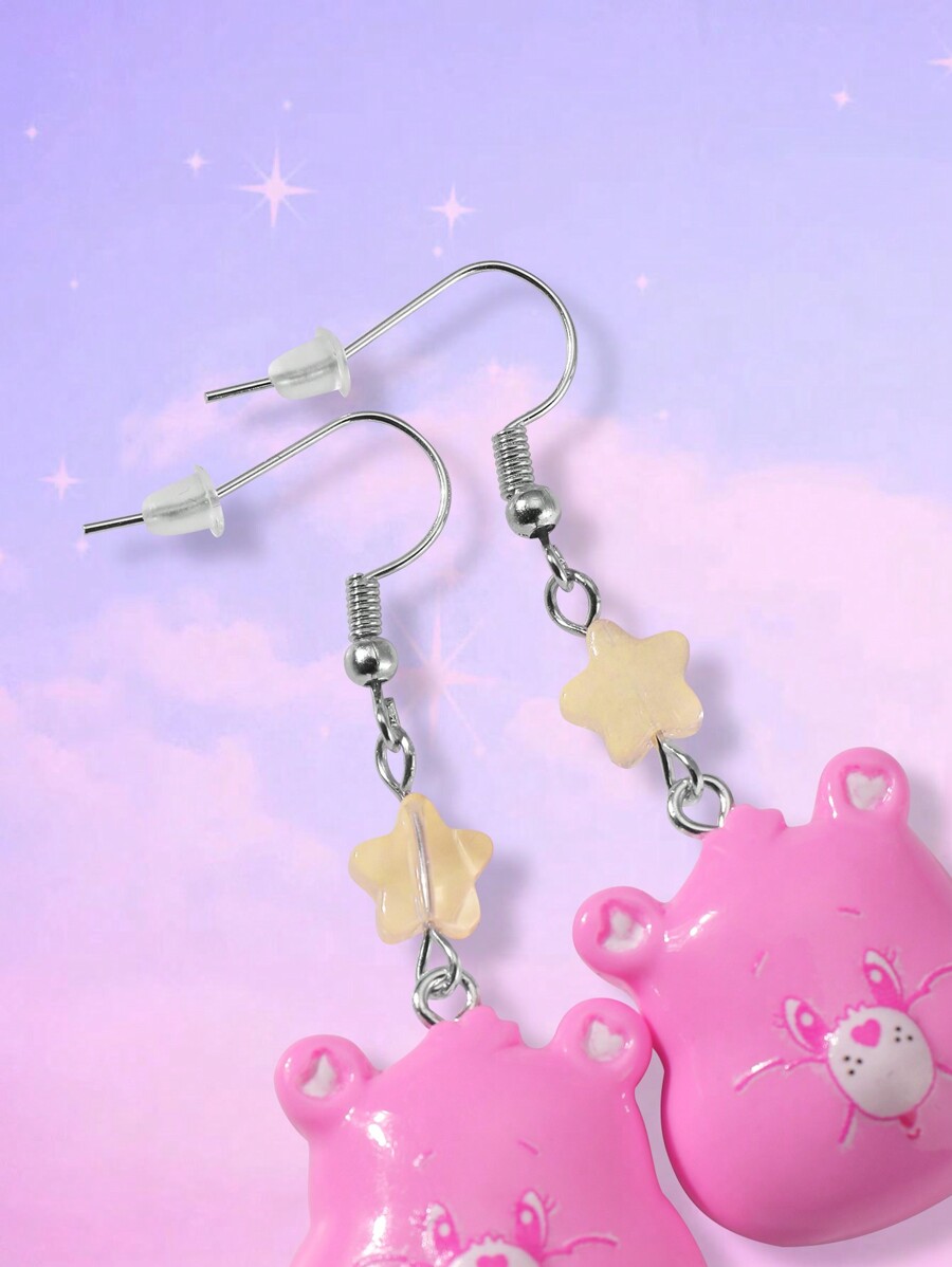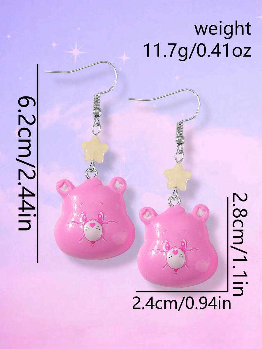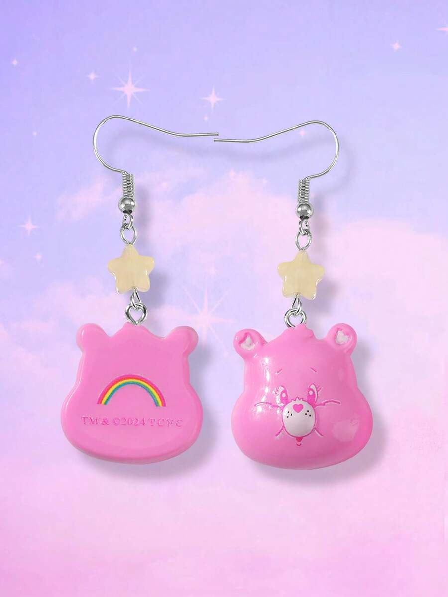 ROMWE X Care Bears أقراط قلادة الدب الوردي والنجمة وجه الدب الجميل زوج واحد ، مناسبة للارتداء اليومي وهدايا العطلات