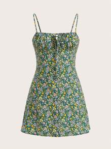 Inna Moreva فستان كامي بطباعة أزهار اقحوان معقود من الأمام